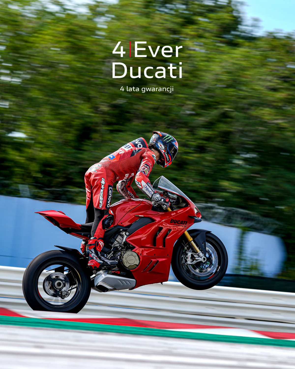 Ducati w przekonaniu o niezawodności swoich pojazdów wprowadza unikalną na rynku motocyklowym, fabryczną, czteroletnią gwarancję 4Ever Ducati. Program gwarancyjny jest całkowicie bezpłatny i dotyczy pełnej oferty modelowej Ducati na rok 2022*.