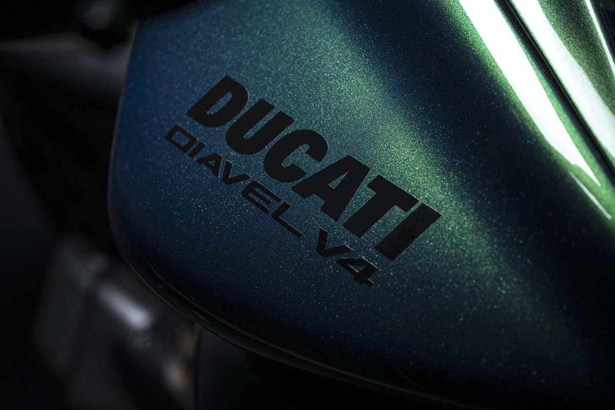 Dział Centro Stile Ducati, we współpracy z projektantami z marki Bentley, stworzył nowy projekt tego wyjątkowego motocykla, czerpiąc inspirację z modelu Batur. Zdecydowane i agresywne linie Diavela V4 zostały podkreślone przez bogaty w metaliczne odcienie kolor Scarab Green, który pochodzi z palety Bentley Mulliner. Wiele charakterystycznych cech modelu Batur zostało wykorzystanych w różnych elementach motocykla i są to między innymi kute felgi w kolorze Dark Titanium Satin, które kształtem przypominają te z samochodu, a dodatkowo zaprojektowane i stworzone zostały specjalnie na potrzeby tego modelu.