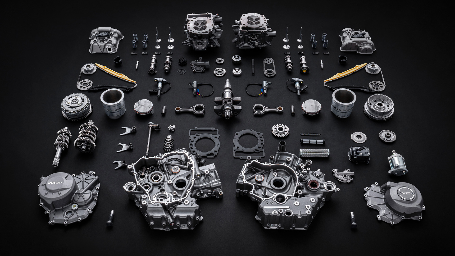 Panigale V2 i Streetfighter V2 są wyposażone w nowy silnik V2 90° o pojemności 890 cm3 i mocy 120 KM, ze zmiennymi fazami rozrządu oraz homologacją Euro5+. Jego masa wynosi zaledwie 54,5 kg (-9,4 kg w porównaniu do jednostki Superquadro, którą zastępuje), co czyni go najlżejszym dwucylindrowym silnikiem kiedykolwiek wyprodukowanym przez Ducati. Krzywa momentu obrotowego, z 70% maksymalnej wartości dostępnej już przy 3000 obr./min, zapewnia ekscytującą jazdę. Do użytku na torze możliwe będzie zamontowanie wyścigowego wydechu, który zwiększa maksymalną moc do 126 KM, przy jednoczesnej redukcji masy o 4,5 kg.