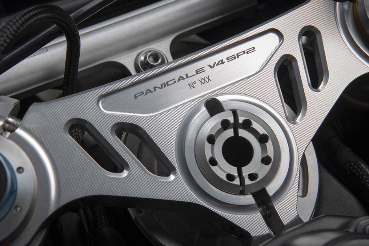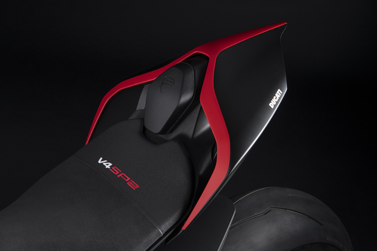 Panigale V4 SP2 wyróżnia się wyposażeniem technicznym typowym dla wersji „SP” (akronim oznaczający Sport Production). Ma jeszcze mocniejszy układ hamulcowy, lekkie obręcze z włókna węglowego i suche sprzęgło wprost z motocykli WorldSBK, wyścigowe podnóżki i wiele karbonowych elementów. Motocykl jest wyposażony w zestaw przystosowujący go do użytku na torze, który zawiera aluminiowe nakładki do demontażu lusterek wstecznych, zaślepkę uchwytu tablicy rejestracyjnej i otwartą osłonę sprzęgła z włókna węglowego. Rezultatem jest motocykl stworzony do pobijania własnych rekordów na torze wyścigowym, „The Ultimate Racetrack Machine”.
