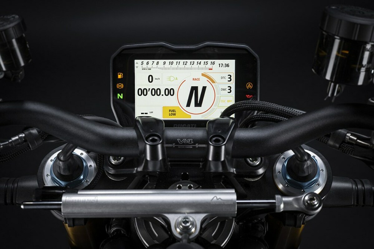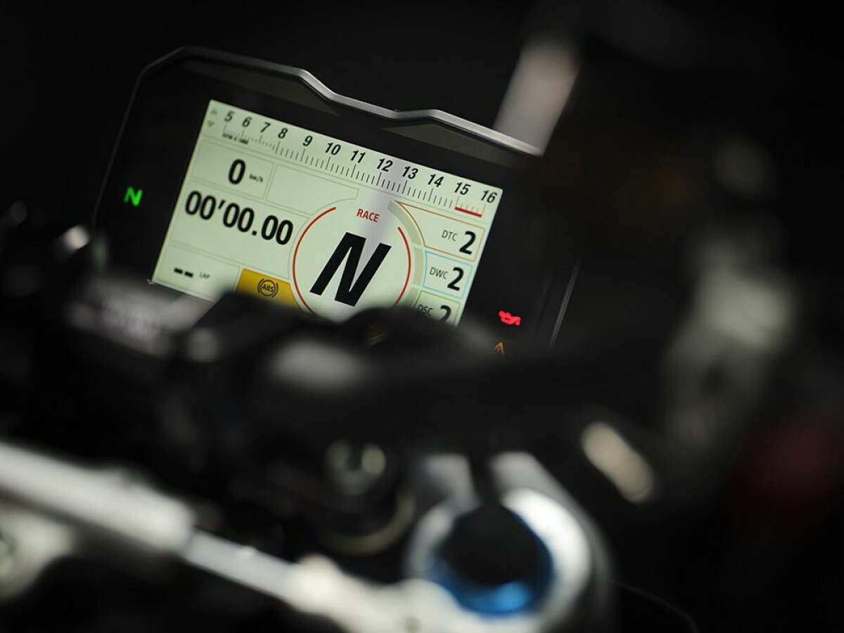 Tablica rozdzielcza nowego Streetfightera V4 podąża za ewolucją Panigale V4. Grafika została zoptymalizowana, aby informacje były bardziej przejrzyste i czytelne. Podobnie jak w Panigale V4, moment optymalnej zmiany biegów sygnalizowany jest zielonym diodą. Tryb wyświetlania „Track Evo”, który odwzorowuje układ używany w MotoGP, gwarantuje natychmiastowy podgląd na najważniejsze parametry i interwencję systemów elektronicznych.