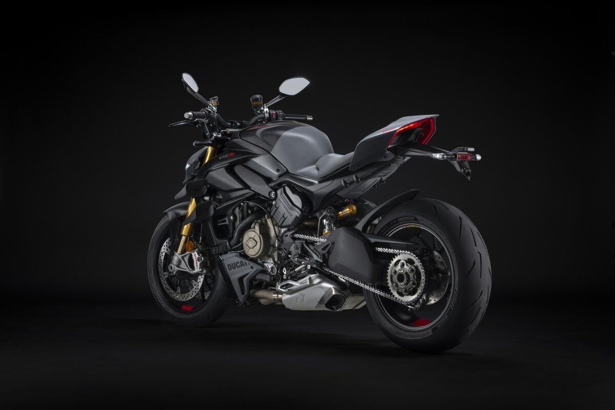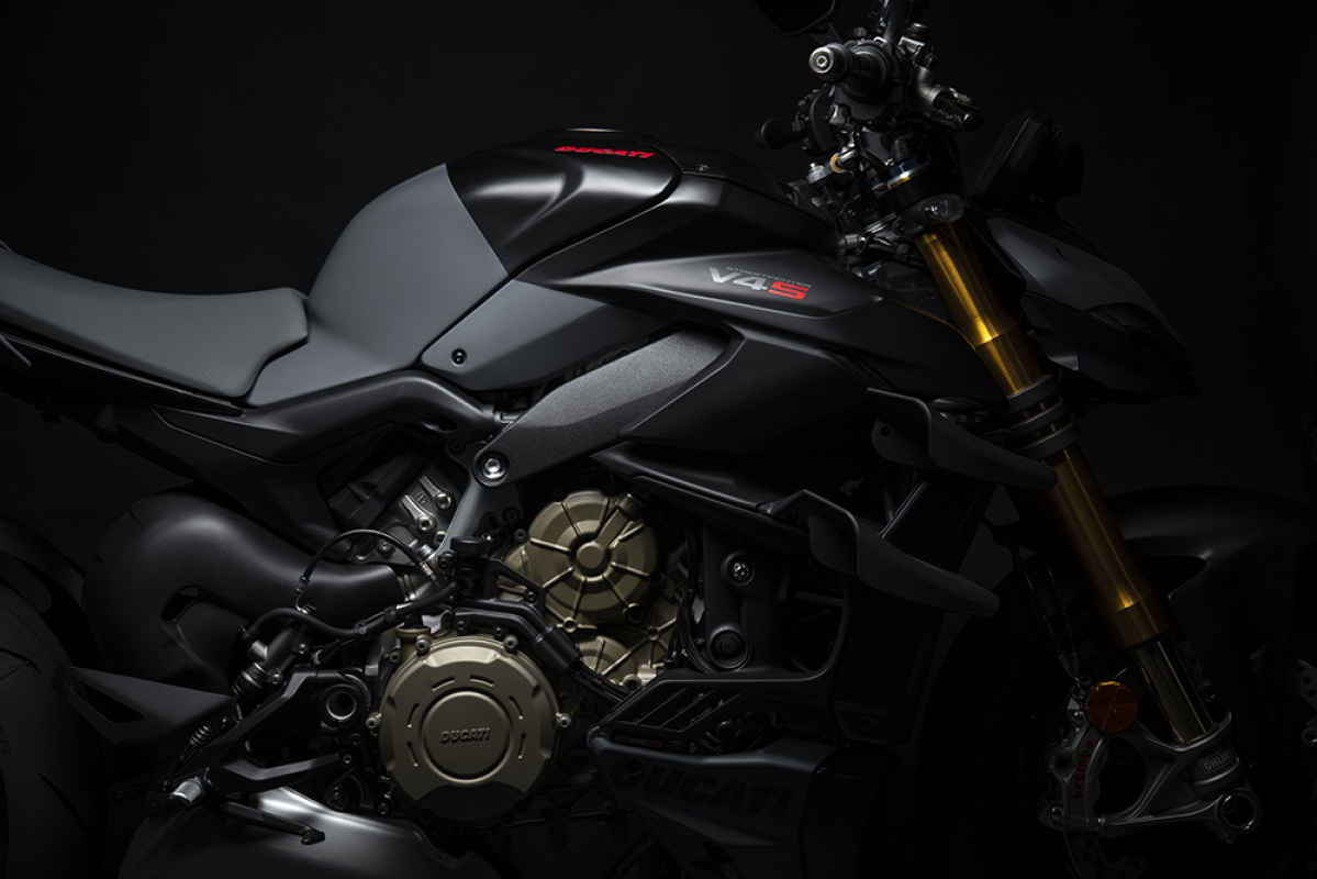 Nowa rama „Front Frame” i Desmosedici Stradale pozostają odsłonięte tworząc czystą, wyrafinowaną formę. Streetfighter w wersji V4 S na rok modelowy 2023 jest dostępny w nowej kolorystyce Grey Nero. Kontrast między szarością, a różnymi odcieniami czerni nadaje bardziej agresywnego charakteru i uwydatnia wyposażenie techniczne, takie jak hamulce i zawieszenie.