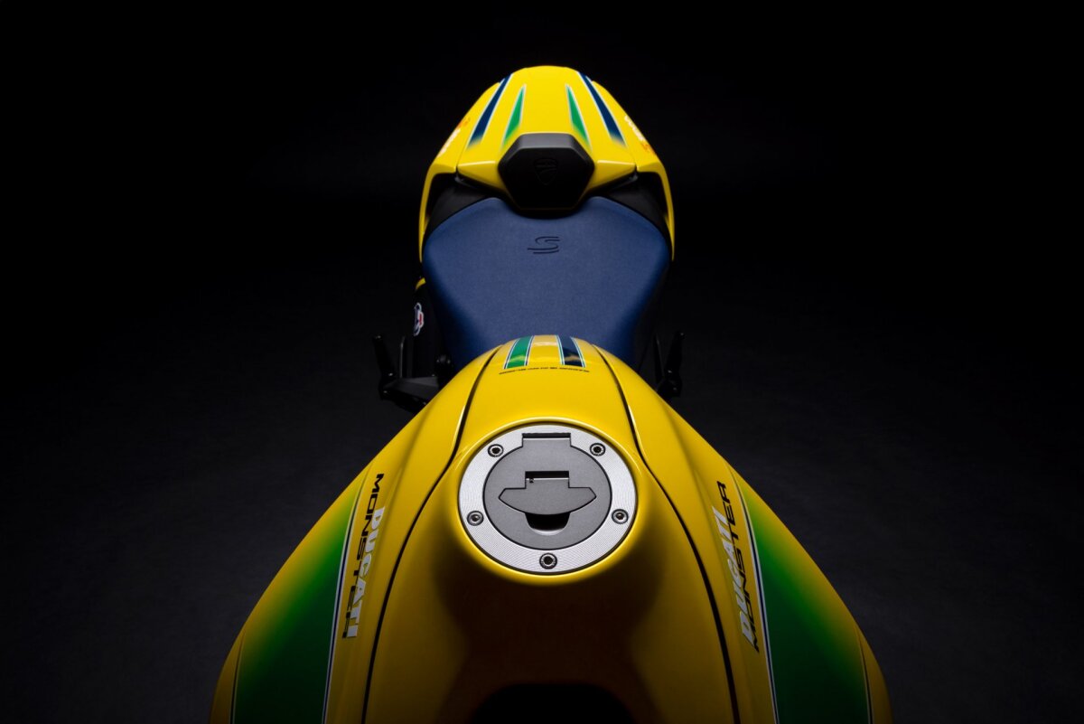 Limitowana i numerowana edycja Monstera poświęcona jest legendzie Formuły 1. Ayrton Senna był również pasjonatem motocykli i marki Ducati. Barwy motocykla stworzone przez Centro Stile Ducati z udziałem Senna Brands są inspirowane malowaniem kasku, którego Brazylijczyk używał przez całą swoją karierę. Monster Senna zostanie wyprodukowany w zaledwie 341 egzemplarzach, a jego prezentacja odbyła się podczas Grand Prix Formuły 1 na torze Imola.