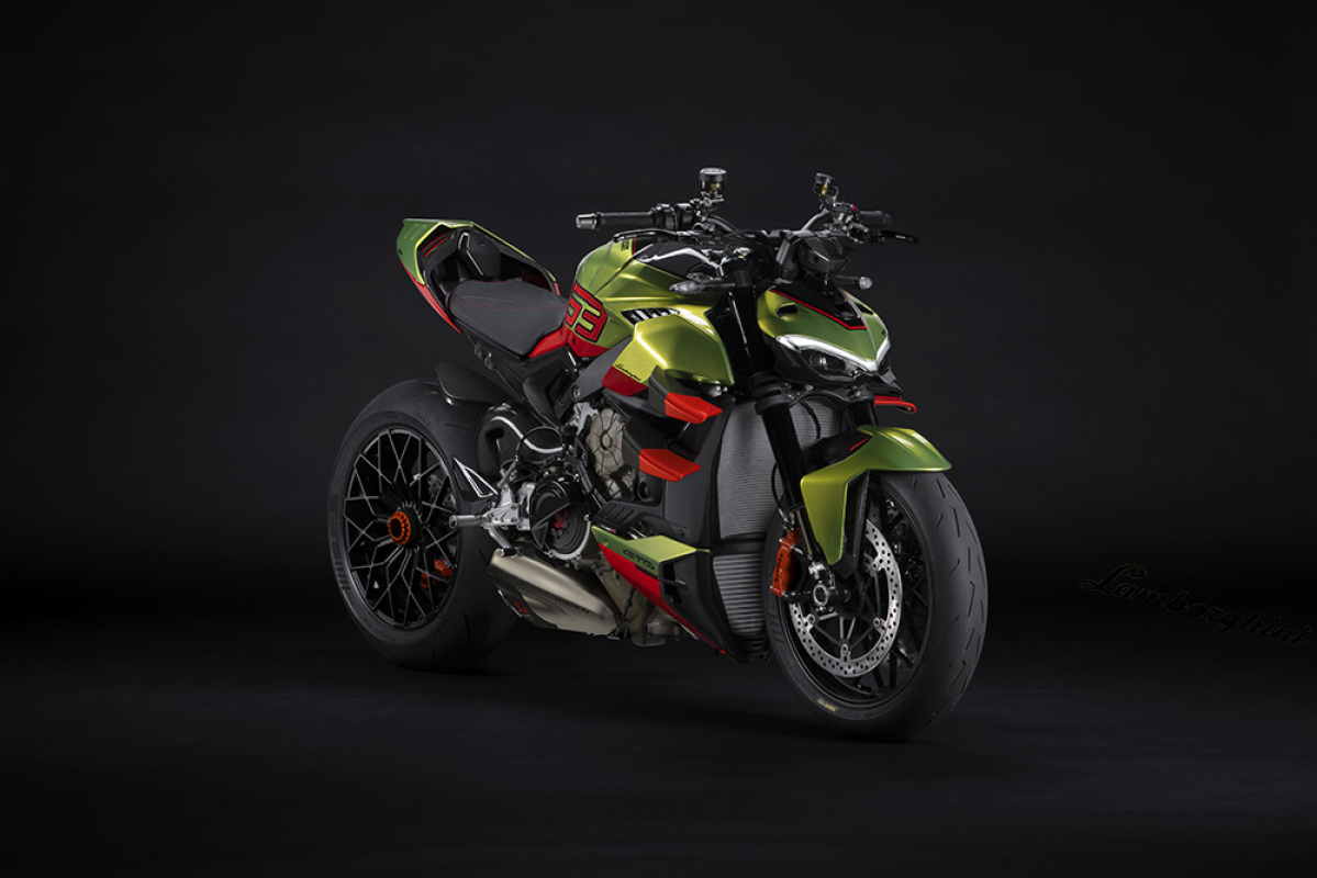 Wyjątkowa wersja Streetfightera V4, inspirowana spersportowym Lamborghini Huracán STO i zbudowana na bazie Panigale V4 S 2023, wyprodukowana zostanie w numerowanej i limitowanej edycji 630 + 63 egzemplarzy. Charakteryzujący się niezwykle agresywnymi liniami, lekkimi komponentami oraz dedykowanym malowaniem, Ducati Streetfighter V4 Lamborghini reprezentuje drugi rozdział współpracy między dwiema włoskimi markami.