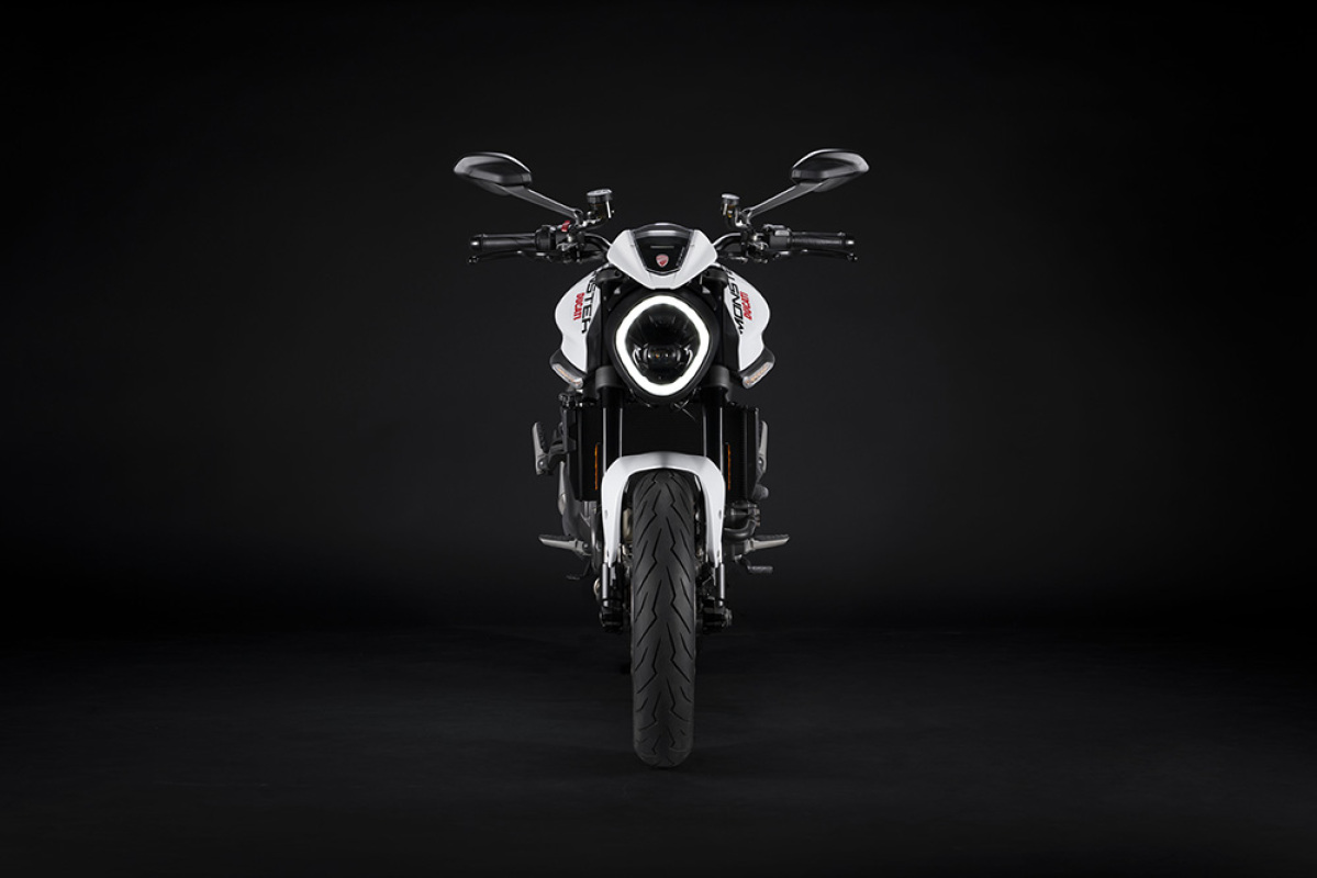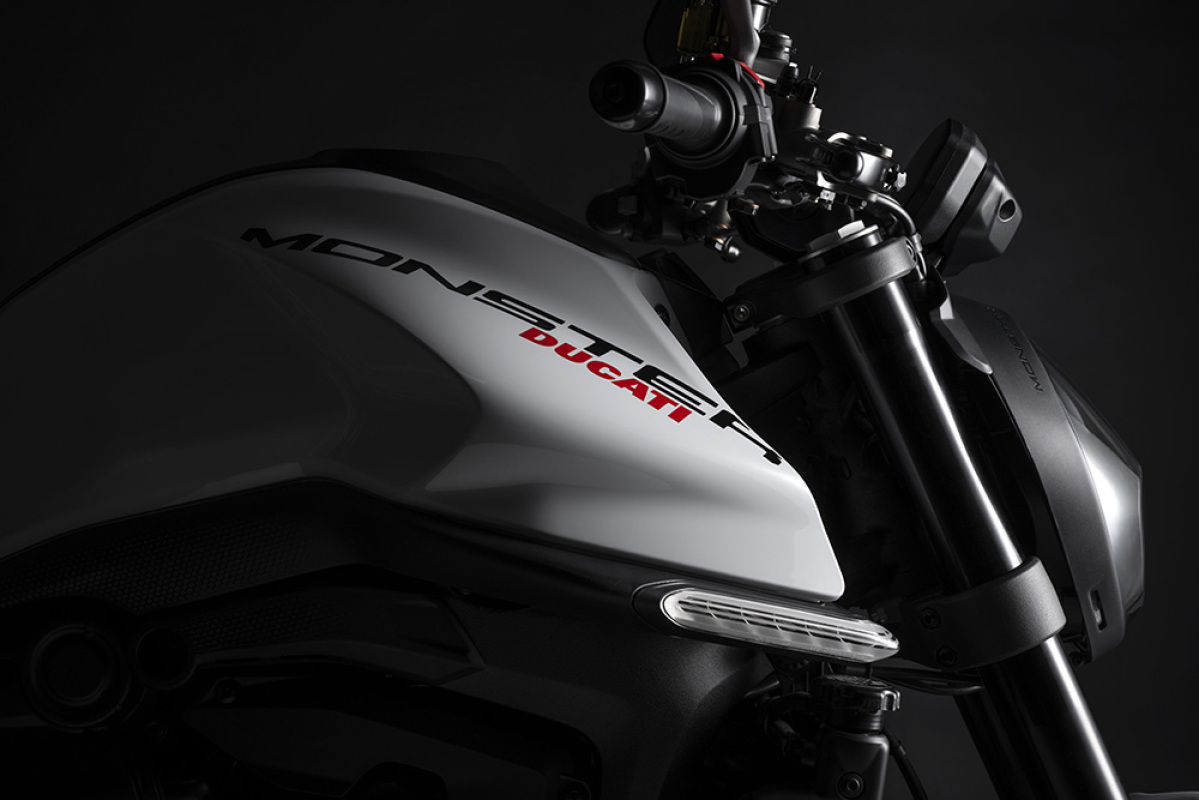Nowoczesny i wyrafinowany design podkreśla charakterystyczne cechy Monstera. Przód motocykla jest zdominowany przez lampę LED, natomiast jego tylną część podkreśla krótki ogon o agresywnych kształtach. Charakterystyczny jest również kształt muskularnego zbiornika paliwa. Najnowszej generacji elektronika to wyposażenie standardowe i obejmuje między innymi systemy ABS Cornering, Traction Control i Wheelie Control. Wszystkie niezbędne informacje i komunikaty wyświetlane są na 4,3-calowym kolorowym wyświetlaczu TFT. Sportowy charakter Monstera podkreśla system Launch Control.