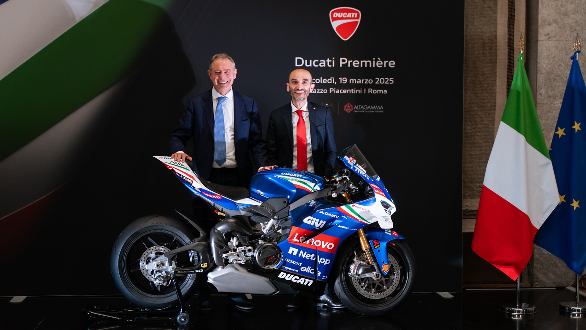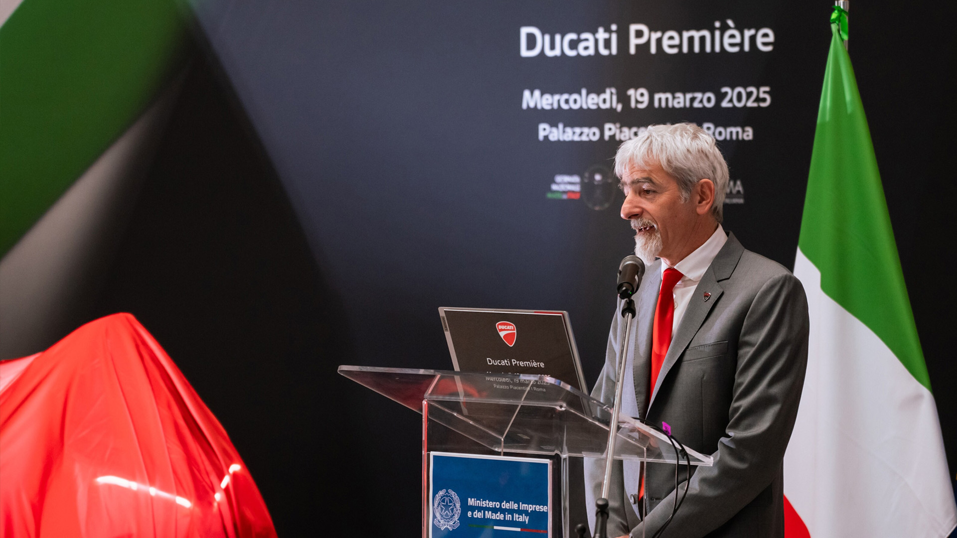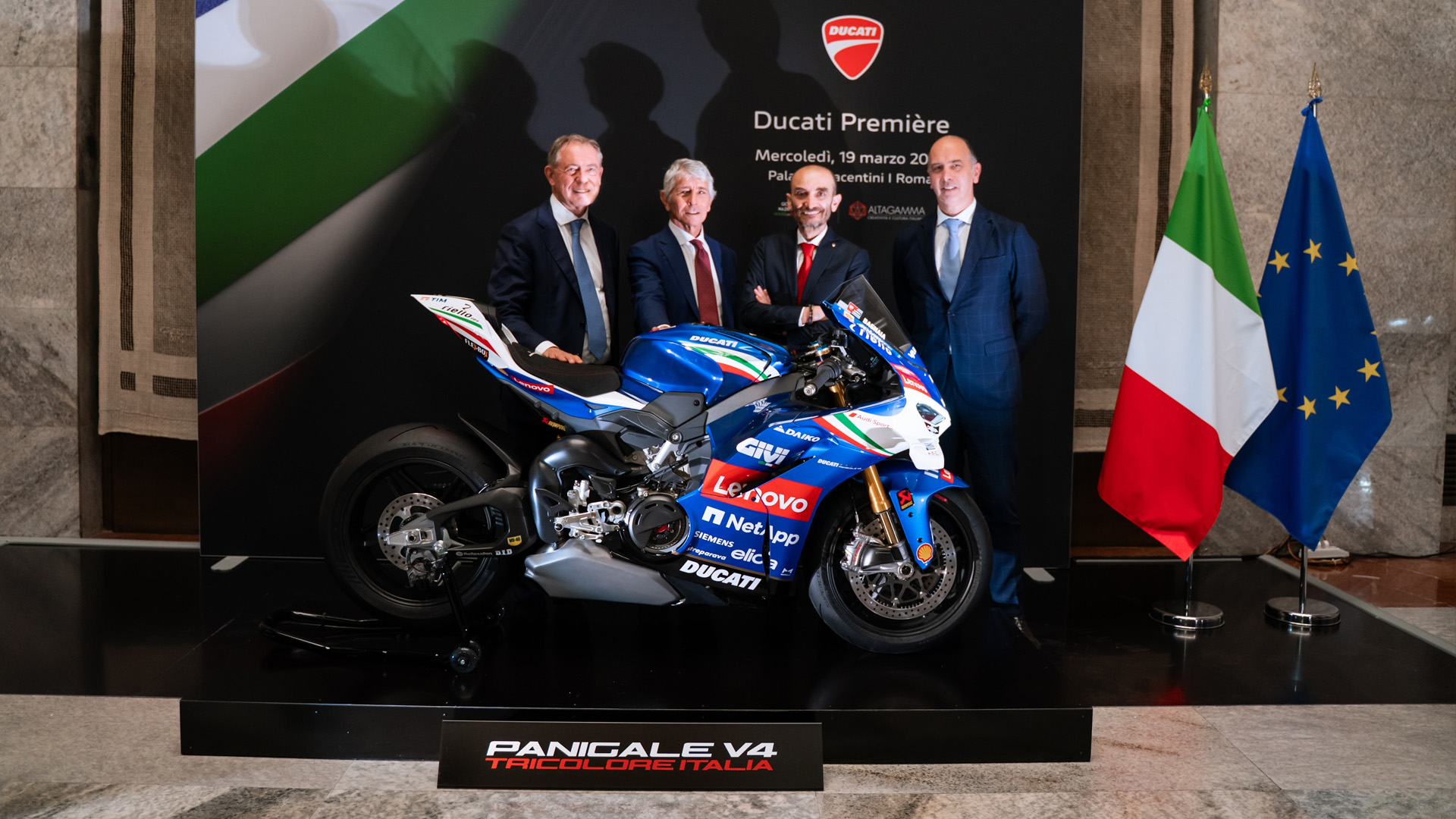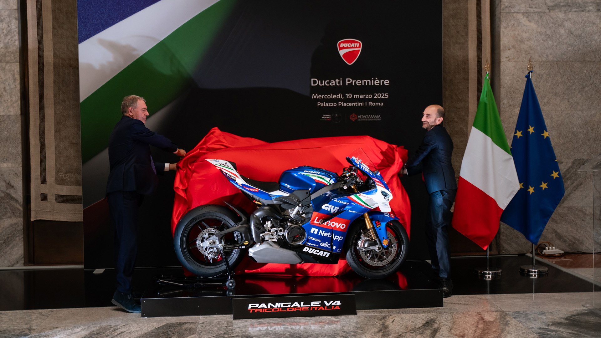 Prezentacja Ducati Panigale V4 Tricolore Italia odbyła się w prestiżowym Salone degli Arazzi w Palazzo Piacentini w Rzymie, siedzibie MIMIT – symbolicznym miejscu włoskiej doskonałości przemysłowej i przedsiębiorczej. Motocykl został pokazany przez Claudio Domenicaliego, CEO Ducati, w obecności Ministra Przedsiębiorczości i "Made in Italy", Adolfo Urso.