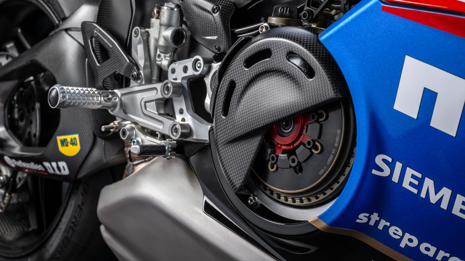 Model Tricolore Italia jest wzbogacony o standardowe wyposażenie techniczne, które poprawia osiągi na torze, czyniąc go jeszcze bardziej wyjątkowym. Posiada pięcioramienne felgi z włókna węglowego, które redukują masę o 0,95 kg w porównaniu do kutych felg w Panigale V4 S, obniżają moment bezwładności o 12% z przodu i 19% z tyłu, co zwiększa zwrotność i stabilność motocykla podczas zmiany kierunku jazdy.