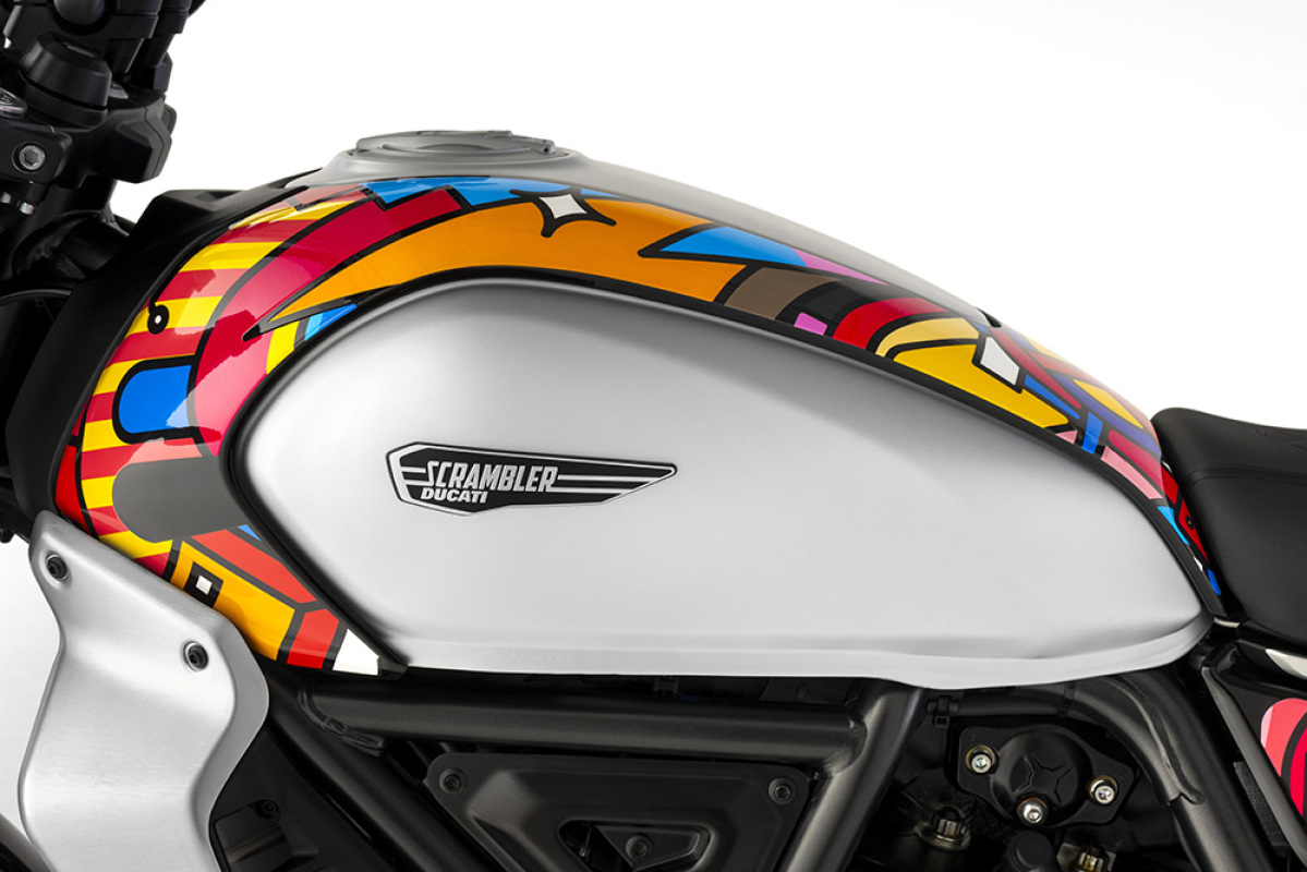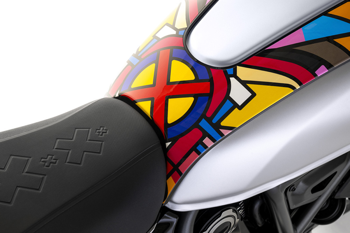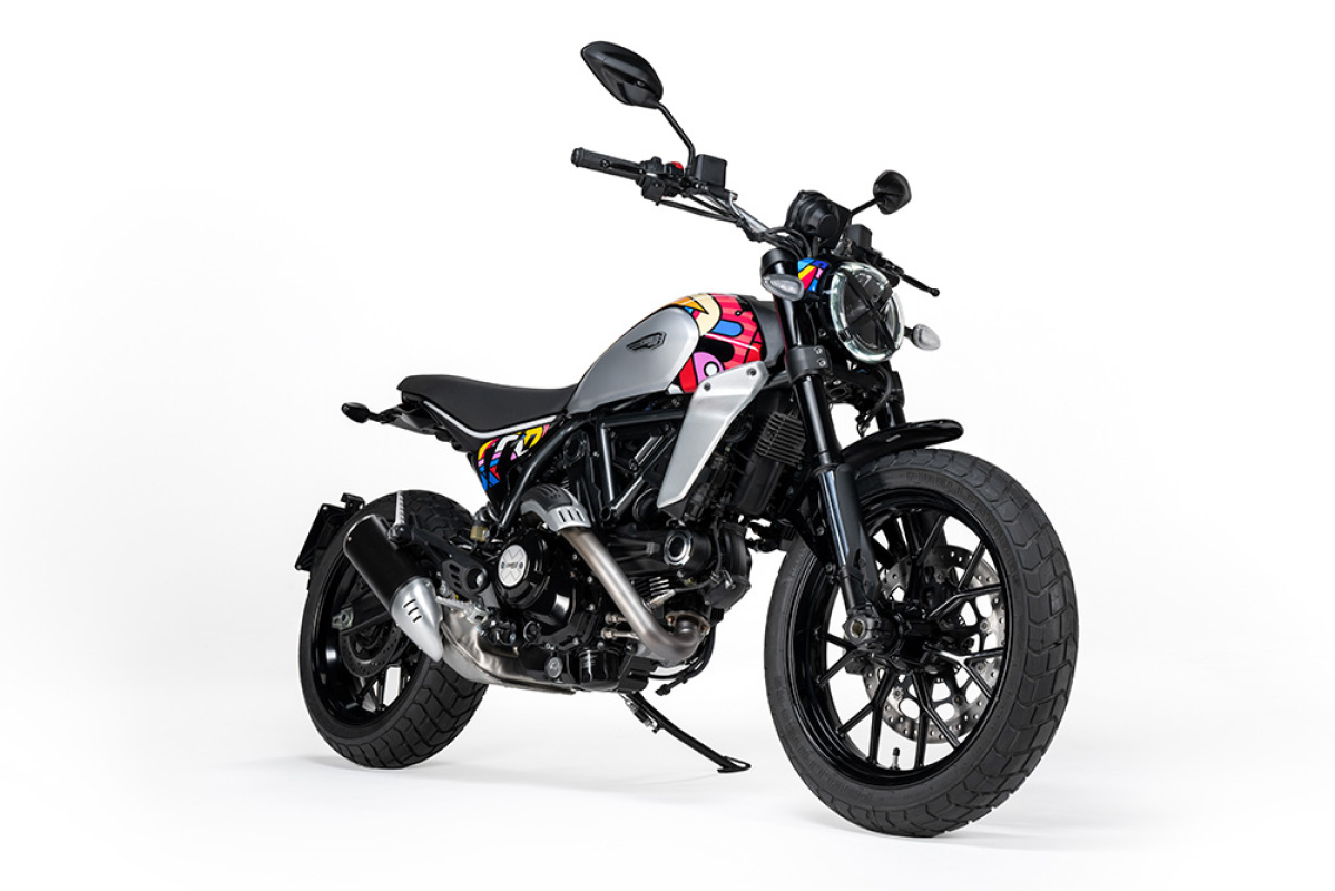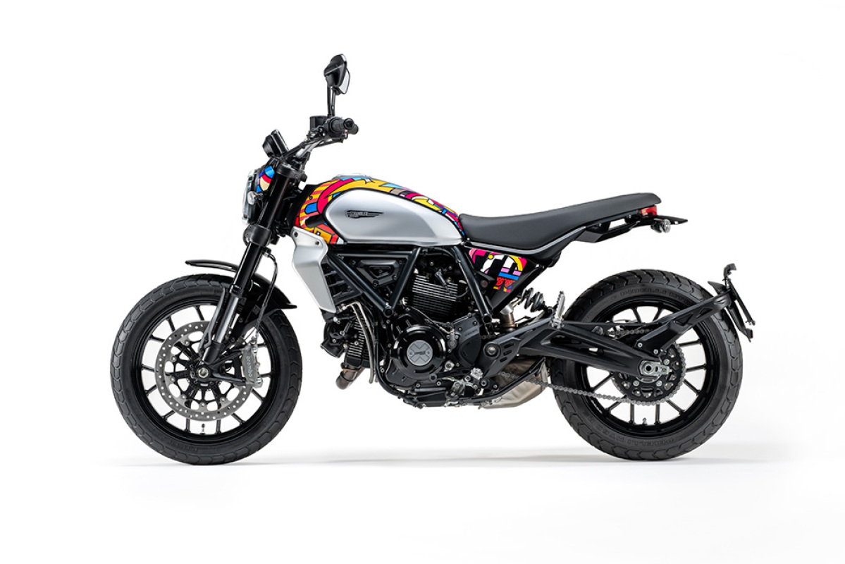 Ta pierwsza ekskluzywna kolekcja wymiennych nakładek potwierdza znaczenie koncepcji personalizacji we wszechświecie Scrambler Ducati, w którym można cieszyć się przyjemnością z jazdy i wyrażania siebie. Ta ostatnia koncepcja szczególnie zainspirowała talent Van Orton Design, czyli włoskiego duetu należącego do najważniejszych przedstawicieli europejskiej sztuki cyfrowej, do stworzenia tego wyjątkowego i kolorowego zestawu nakładek, w którym ich artystyczna tożsamość łączy się z kreatywnością Scrambler Ducati.