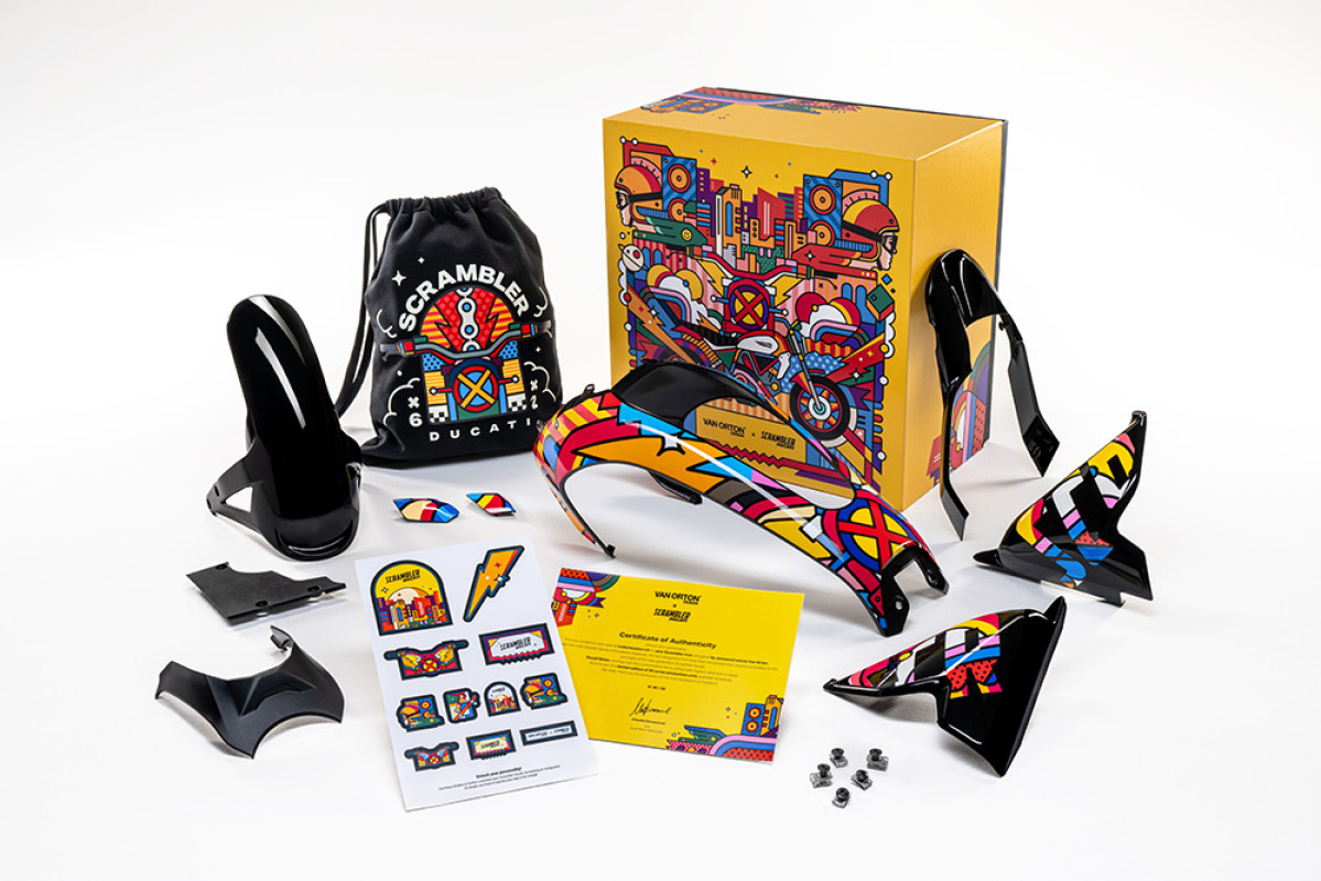 Limitowana edycja zestawu do personalizacji Ducati Scrambler Icon bazuje na specjalnej wersji stworzonej na potrzeby Scrambler Next-Gen Tour. Zestaw Van Orton dołącza do 9 innych wersji kolorystycznych dostępnych dla modelu Icon, a współpraca między Scrambler Ducati i Van Orton Design rozszerza się wraz z wprowadzeniem na rynek kapsułowej kolekcji odzieży.