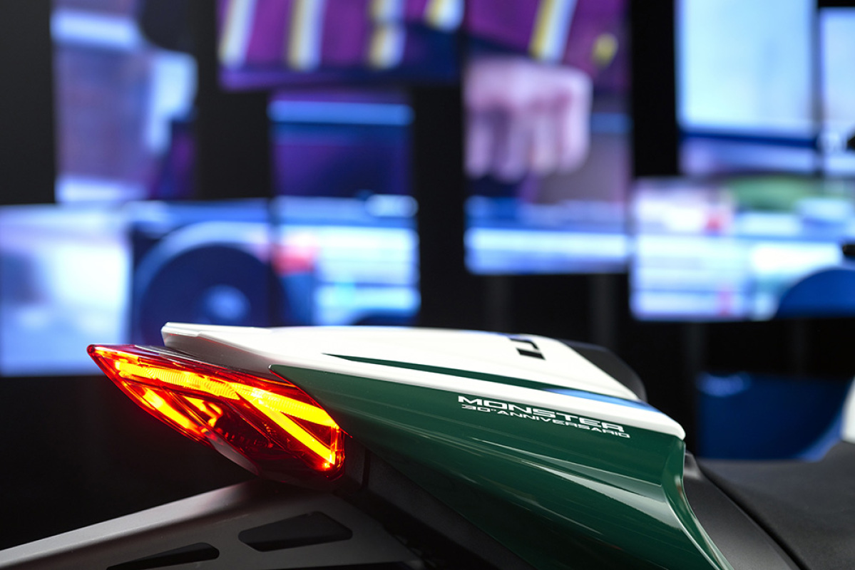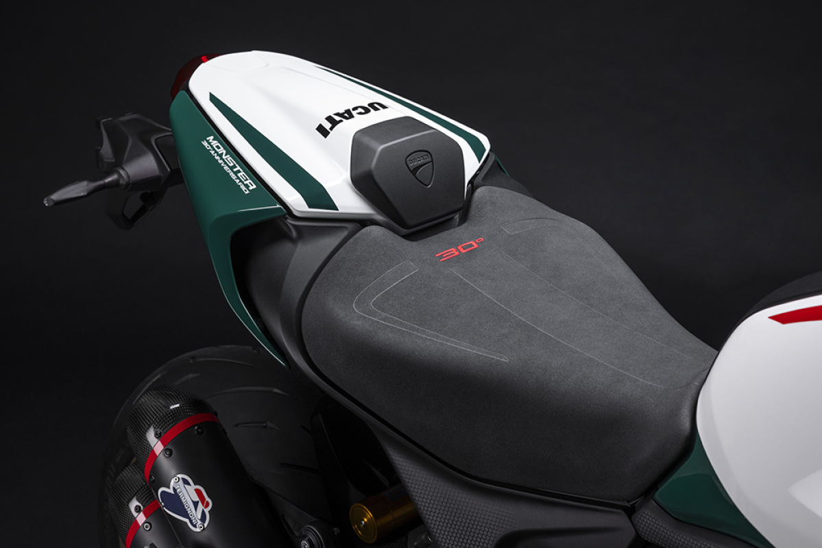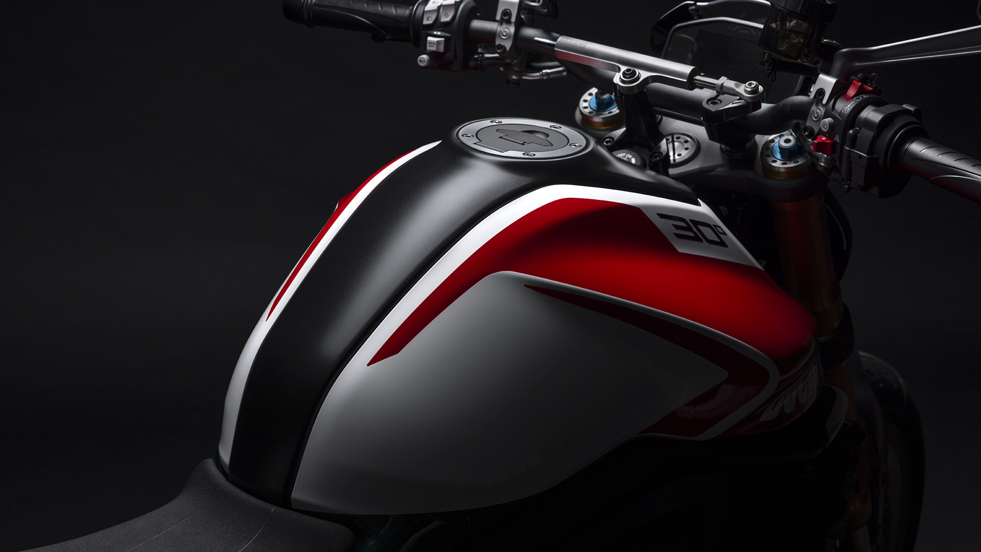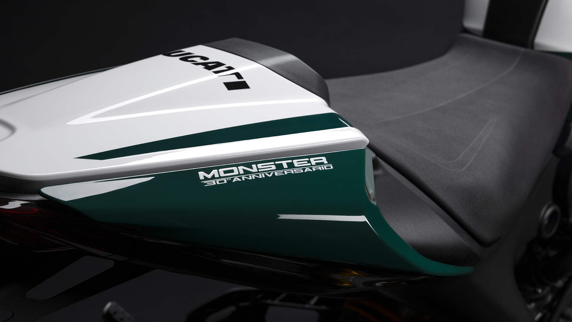 Ta specjalna wersja zachowuje również kultowe cechy modeli Monster: niepowtarzalny styl i maksymalną radość z jazdy i zabawy na drodze. Jego prawdziwa natura ujawnia się już na pierwszy rzut oka dzięki malowaniu Tricolour 30th Anniversary, która inspirowana jest najbardziej sportowymi Monsterami z przeszłości. To malowanie celebruje wykonanie "Made in Italy". Złoty kolor felg wykonany został specjalnie dla tego modelu. Innymi charakterystycznymi elementami tej wersji jest siedzenie ozdobione haftowanym logo na 30-lecie oraz dedykowana animacja pojawiająca się na desce rozdzielczej, która uruchamia się po włączeniu zapłonu. Każdy egzemplarz otrzyma także wyjątkowy numer seryjny, certyfikat autentyczności i dedykowany pokrowiec na motocykl.