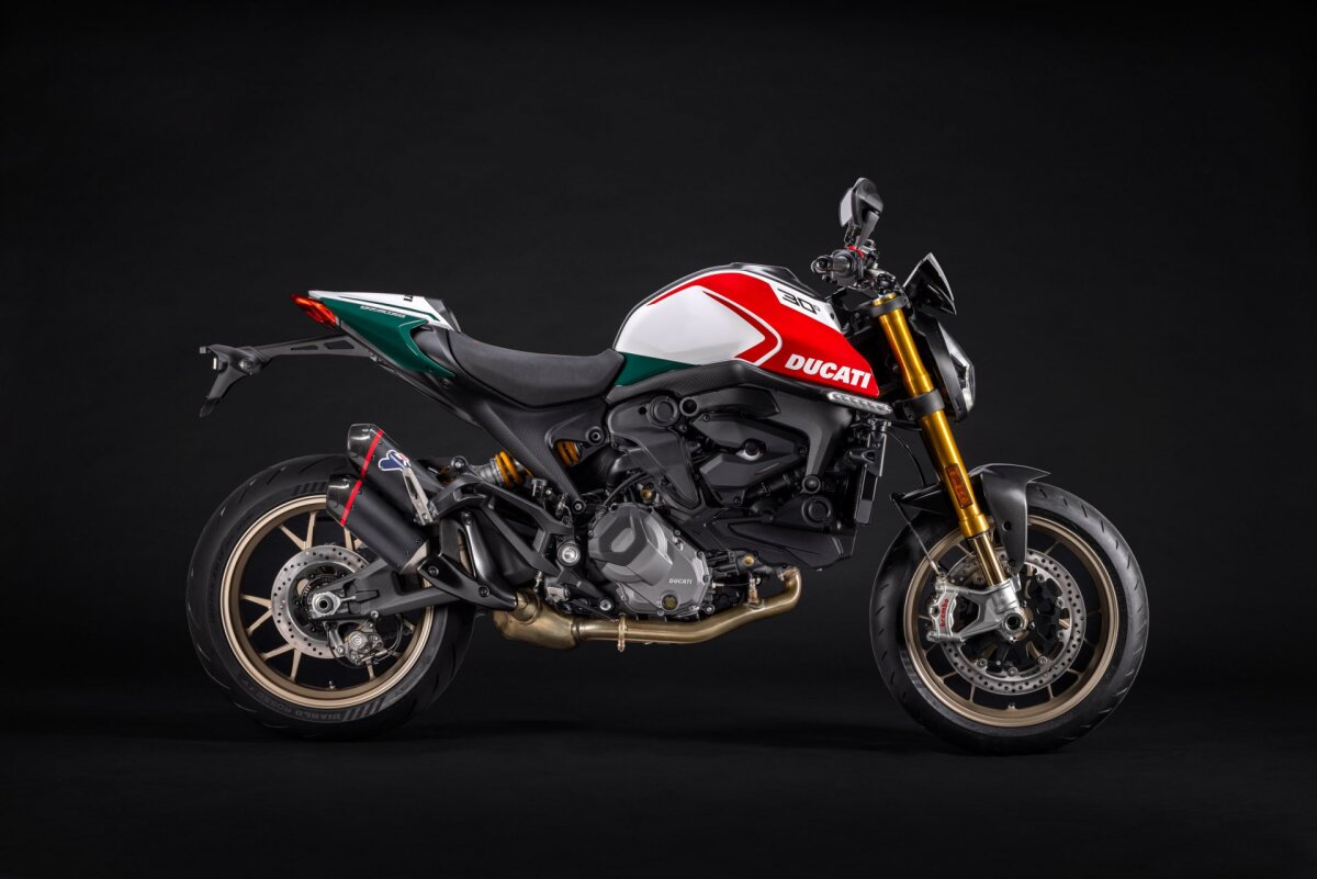 Ducati poprzez nową odmianę Monstera składa hołd modelowi, który zmienił świat motocykli. Specjalny Monster 30° Anniversario, limitowany do zaledwie 500 sztuk, wyróżnia się między innymi trójkolorowym malowaniem. Dzięki najbardziej zaawansowanym komponentom, które zwiększają sportowe i dynamiczne właściwości, jest to najlżejszy Monster w historii.