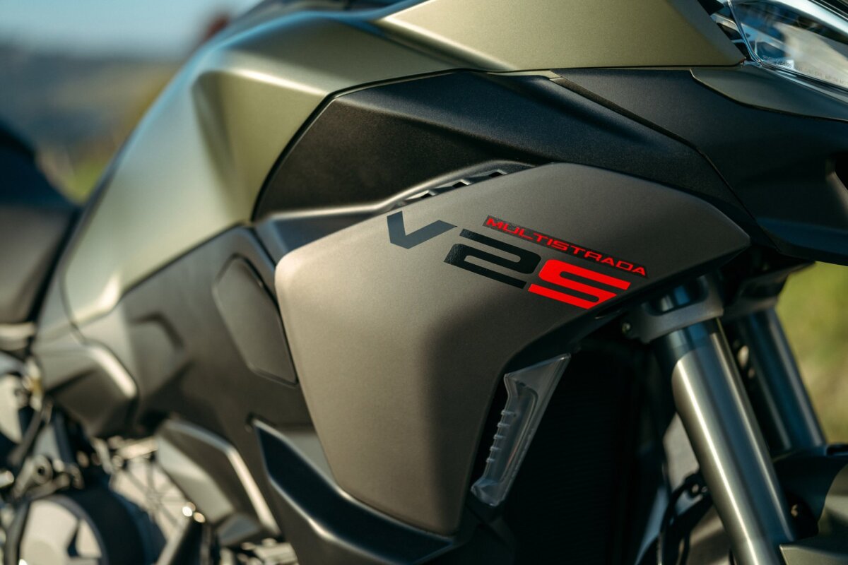 Projekt nowej V2 czerpie inspirację z koncepcji stylistycznych, które stworzyły historię rodziny Multistrada – sportowe linie, smukły ogon i charakterystyczny „dziób”. Podobnie jak wszystkie motocykle z Borgo Panigale, Multistrada V2 łączy w sobie design i funkcjonalność. Projektanci Centro Stile Ducati nakreślili linie ściśle współpracując z inżynieriami, aby zintegrować aerodynamiczne rozwiązania w celu poprawy komfortu termicznego i ochrony przed warunkami atmosferycznymi. Regulowana przednia szyba oraz dodatkowe deflektory zintegrowane z linią owiewek zostały zaprojektowane na nowo dzięki starannie przeprowadzonym badaniom aerodynamicznym. Aby zapewnić komfort termiczny, podobnie jak w Multistradzie V4, wprowadzono boczne kanały wentylacyjne zintegrowane z konstrukcją motocykla, które pomagają kierować świeże powietrze na nogi kierowcy.