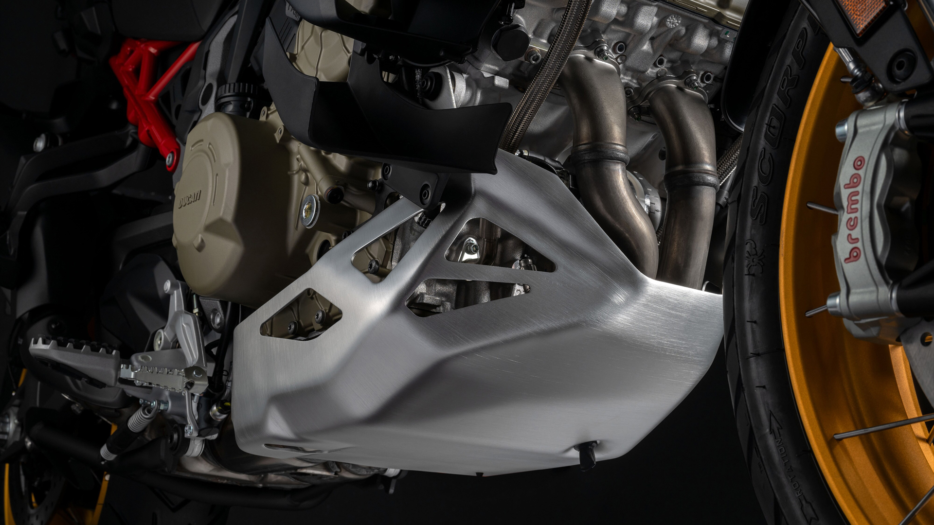 Silnik V4 Granturismo o pojemności 1158 cm³ generuje moc 170 KM przy 10750 obr./min i moment obrotowy 121 Nm przy 8750 obr./min. Charakteryzuje się wyjątkowo liniową krzywą momentu obrotowego, zapewniając płynną i progresywną reakcję w pełnym zakresie obrotów. Osiągi tej jednostki, w połączeniu z jej masą całkowitą wynoszącą zaledwie 66,7 kg, potwierdzają pozycję lidera w swojej kategorii. Doskonałe parametry idą w parze z dopracowanymi rozwiązaniami technicznymi, takimi jak przeciwbieżny wał korbowy, wywodzący się z doświadczeń Ducati Corse w MotoGP, który działa „przeciwko” bezwładności żyroskopowej kół, a także krzywe momentu obrotowego dedykowane dla każdego biegu. Co więcej, silnik wyposażono w rozszerzoną strategię dezaktywacji cylindrów, wyłączając tylny rząd cylindrów podczas postoju i przy niskich obrotach, co przekłada się na niższe zużycie paliwa i emisję spalin.
