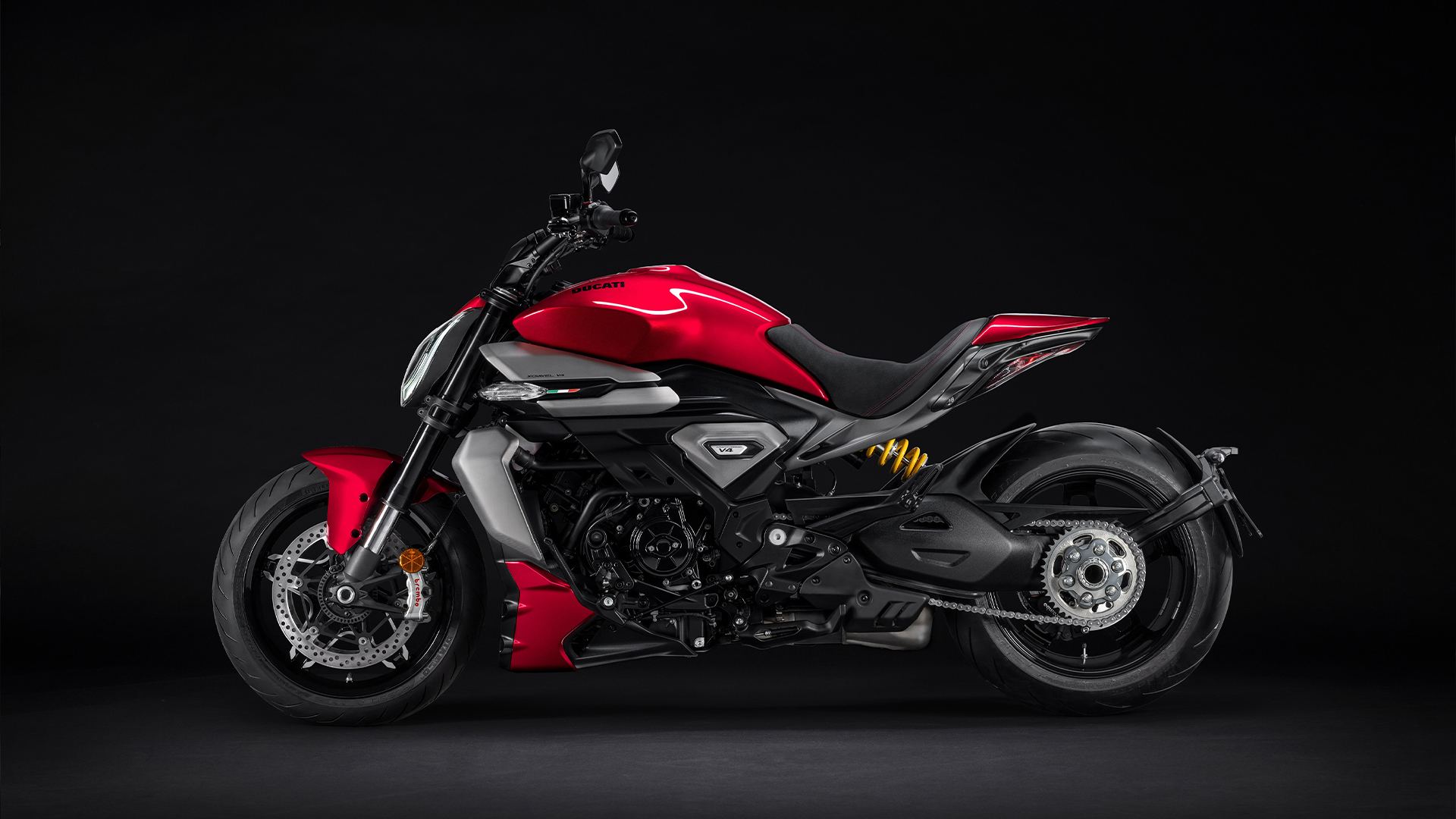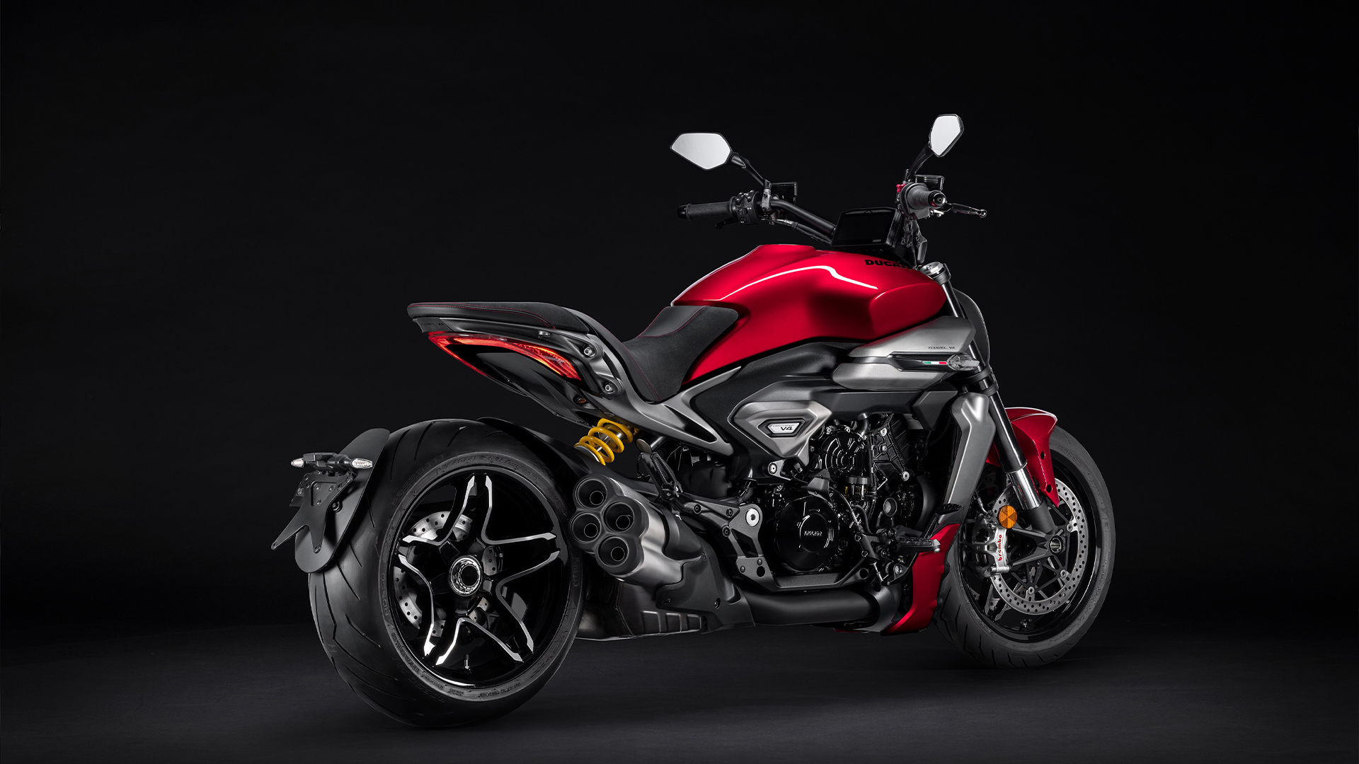 Sportowy charakter XDiavela V4 jest natomiast podkreślony przez homologowany tłumik z czterema tytanowymi końcówkami oraz przez nakładkę, którą można zamontować w miejsce siedzenia pasażera. Do tego wszystkiego można dodać frezowane elementy, części z włókna węglowego, kute felgi oraz zaciski hamulcowe w kolorze czerwonym lub czarnym, aby jeszcze bardziej spersonalizować motocykl.
