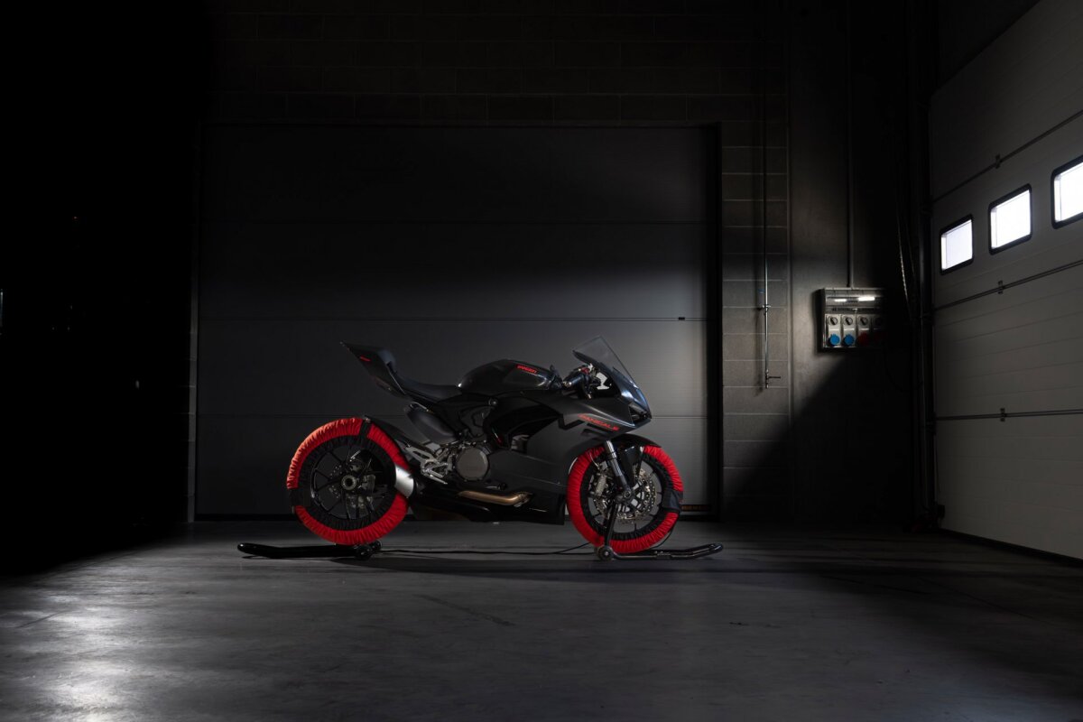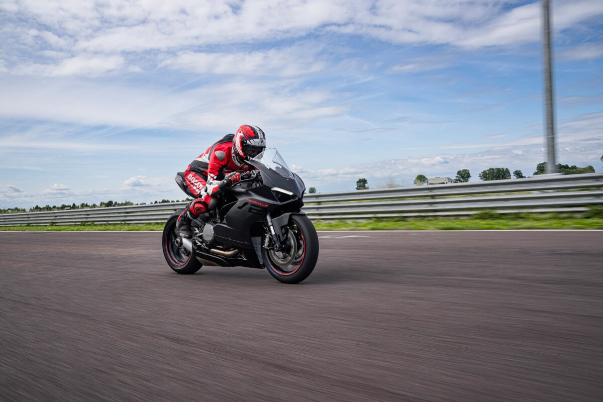 Dwucylindrowy supersportowy motocykl z Borgo Panigale przenosi na drogi publiczne rozwiązania technologiczne wprost ze świata wyścigów. Panigale V2 staje się jeszcze bardziej odważne dzięki nowej kolorystyce Black on Black.