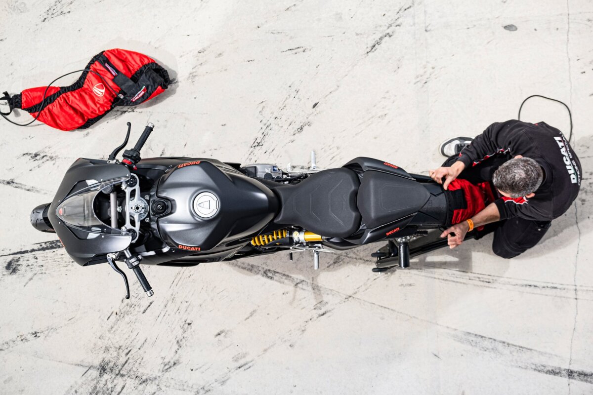 Na rok 2024 Ducati aktualizuje gamę kolorów Panigale V2 o nowe malowanie Black on Black, które będzie towarzyszyć klasycznej czerwieni Ducati. Nowa kolorystyka podkreśla odważny charakter Panigale V2. Matowa czerń przeplata się z błyszczącymi elementami w czerni, które kontrastują z czerwonymi detalami na zbiorniku, owiewkach i kołach. Nowością jest również siedzisko z nowym wzorem i materiałami.