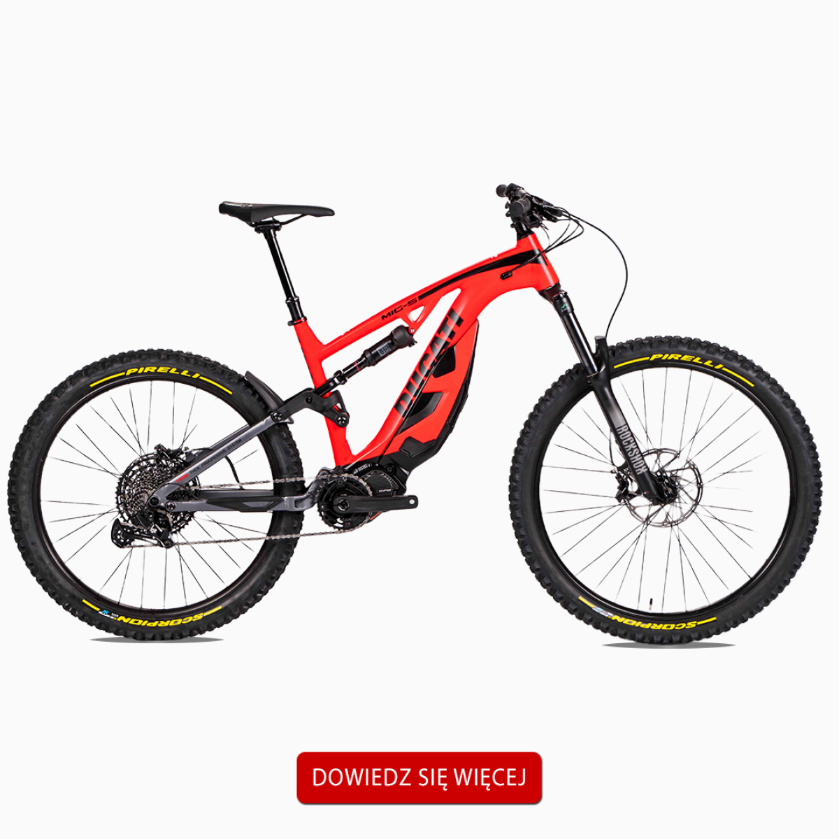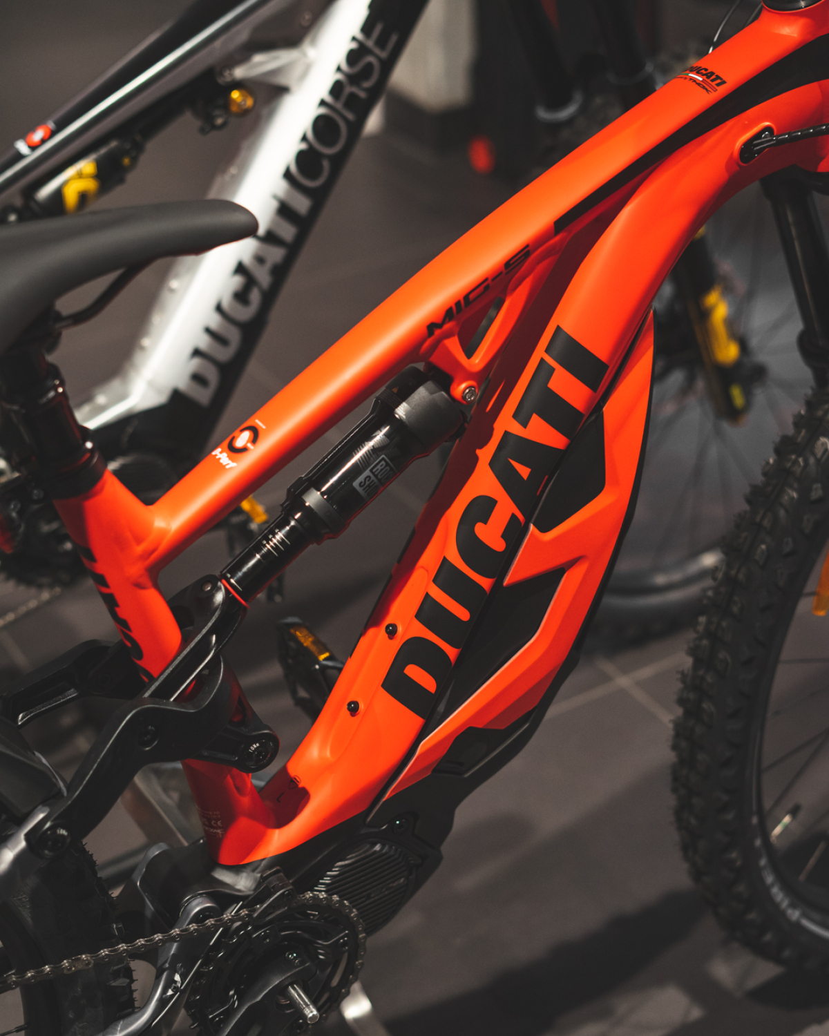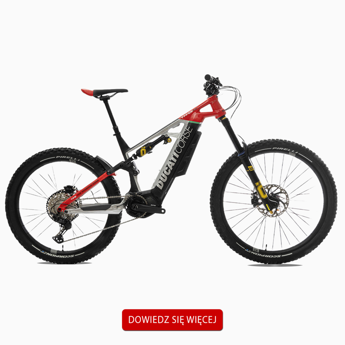 Gamę rowerów Ducati rozpoczyna model MIG-S stworzony do pokonywania wymagających szlaków i zapewniania maksymalnej frajdy w każdych warunkach. Wyróżnia się sportową kolorystyką, którą zaprojektowało Aldo Drudi we współpracy z Centro Stile Ducati. MIG-S wyposażony jest w efektywny i lekki silnik Shimano EP8, który rozwija maksymalny moment obrotowy 85 Nm. Wspomaganie elektryczne dostarczane jest płynnie i naturalnie, aby zawsze zapewniać doskonałą kontrolę. Dzięki aplikacji na smartfona Shimano E-tube Project możliwe jest bezprzewodowe dostosowanie charakteru silnika w dowolnym momencie. Ducati MIG-S wyposażony jest w wysokiej jakości komponenty. Widelec RockShox 35 RC o skoku 150 mm i tylny amortyzator RockShox SuperDeluxe o skoku 140 mm pozwalają na doskonałe prowadzenie. 12-biegowa przekładnia SRAM jest precyzyjna i niezawodna, a 4-tłoczkowe hamulce SRAM Guide T z tarczami 203 mm zapewniają wybitną siłę hamowania. 29-calowe przednie i 27,5-calowe tylne koła THOK e-plus są wyposażone w opony Pirelli Scorpion Enduro S z przodu i Pirelli Scorpion EMTB-S z tyłu, aby zapewnić maksymalną przyczepność i trakcję na najbardziej wymagających odcinkach i przy wyższych prędkościach. Akumulator Shimano 630 Wh umieszczony jest pod ramą, zapewniając wyjątkowo niski środek ciężkości i maksymalizując stabilność.