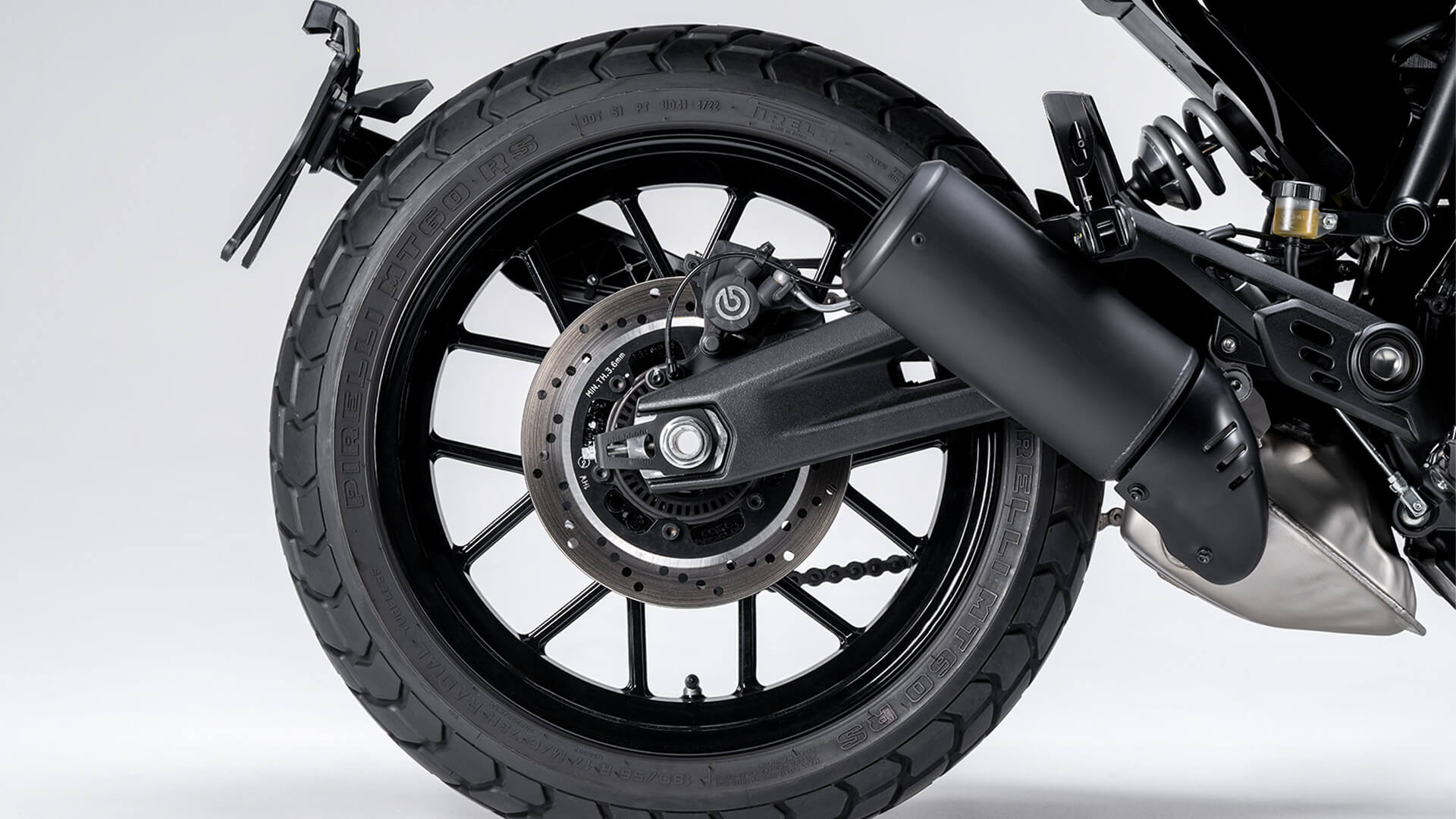 Barwy zdefiniowane przez markę Rizoma we współpracy z Centre Stile Ducati, opierają się na równowadze kolorów Stone White, Black i Metal Rose. Czerń na zbiorniku paliwa, silniku i elementach podwozia wyrażają elegancję, a zarazem stanowi tło do podkreślenia detali w odcieniu Metal Rose – osłon silnika, podnóżków, przedniej szyby, tworząc kontrast z bielą, którą pokryty został częściowo zbiornik paliwa oraz ogon.
