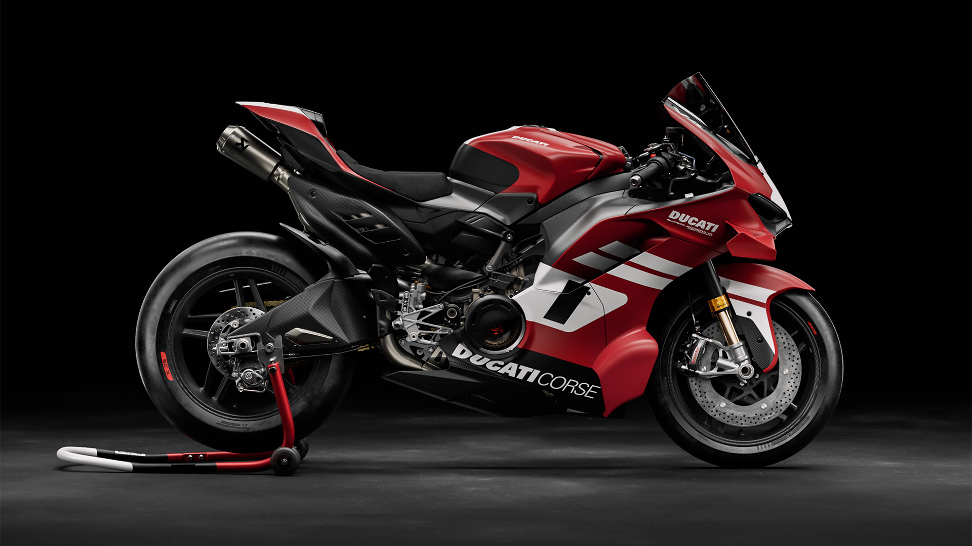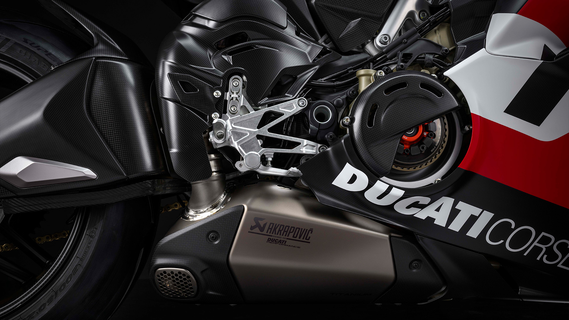 Ducati Superleggera V4 Centenario to pierwszy na świecie motocykl dopuszczony do ruchu drogowego, który wyposażony jest w układ hamulcowy z karbonowo-ceramicznymi tarczami i widelec z goleniami z włókna węglowego. Dzięki zastosowaniu karbonowej ramy, wahacza i nadwozia masa własna bez paliwa wynosi zaledwie 173 kg, która spada do 167 kg po zamontowaniu standardowego zestawu wyścigowego. Silnik Desmosedici Stradale R 1100 generuje 228 KM mocy, a w konfiguracji torowej moc wzrasta do 247 KM, co daje niespotykany stosunek mocy do masy wynoszący 1,48 KM/kg*. Dla uczczenia setnej rocznicy istnienia producenta z Borgo Panigale wyprodukowanych zostanie 500 numerowanych arcydzieł.