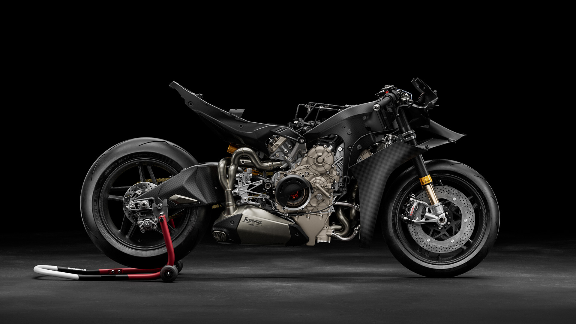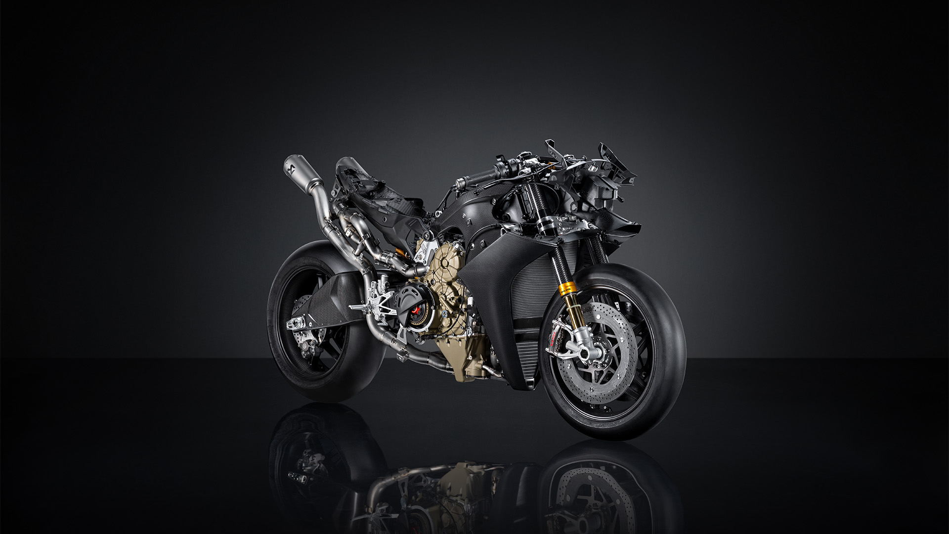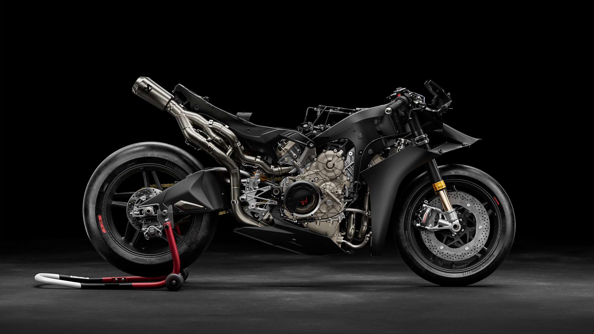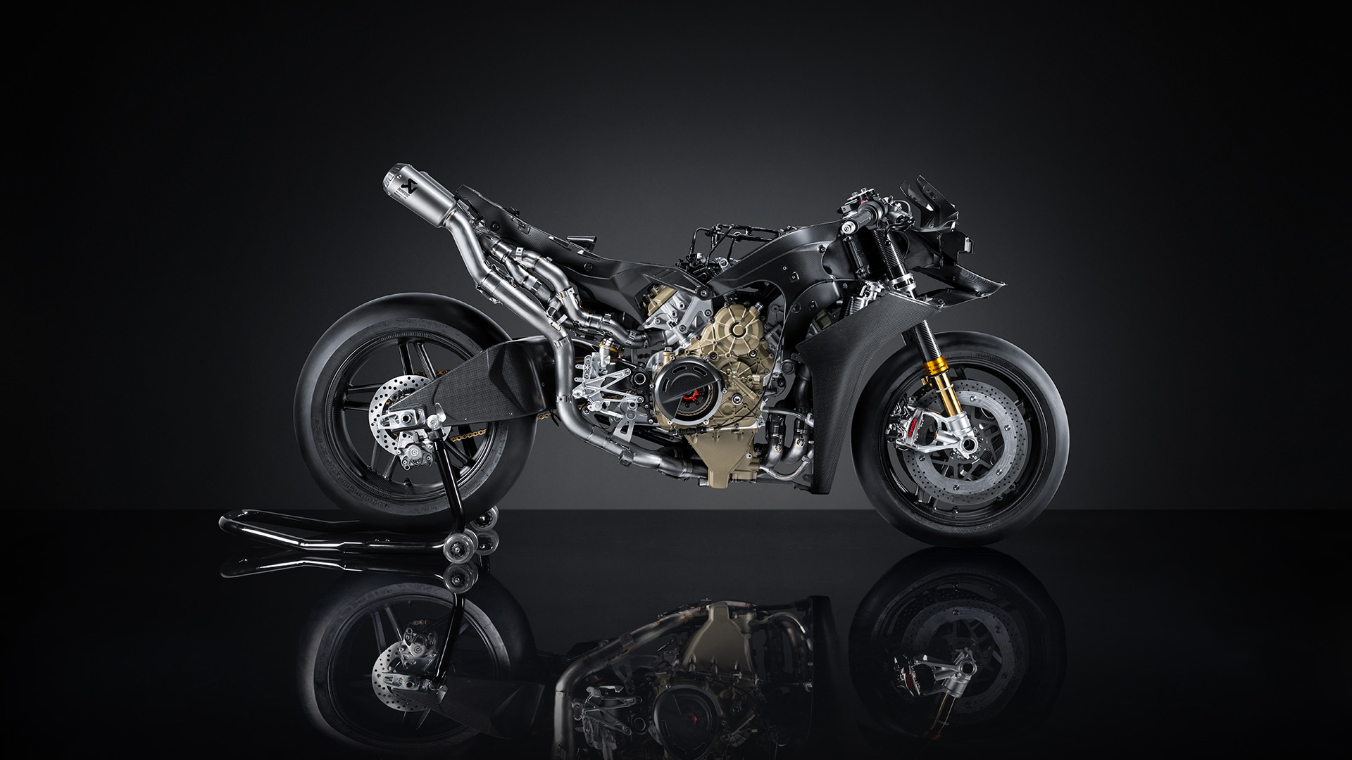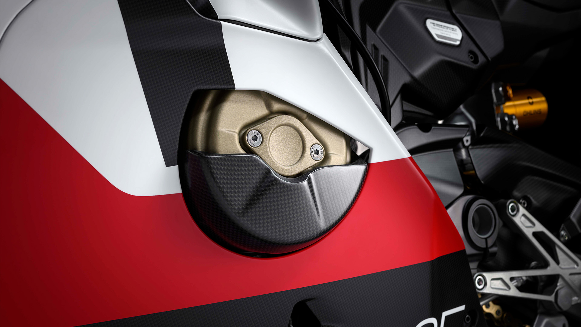 Silnik jest o 3,6 kg lżejszy od jednostki o pojemności 1103 cm³ w modelu Panigale V4 z suchym sprzęgłem. Zmniejszenie masy wynika z użycia tytanu, lżejszych śrub oraz przeprojektowanych elementów wewnętrznych, co pozwoliło zmniejszyć masy obrotowe. Tłoki z dwoma pierścieniami (jeden pierścień kompresyjny i jeden pierścień zgarniający) wykorzystują technologię „Box-In-Box”.