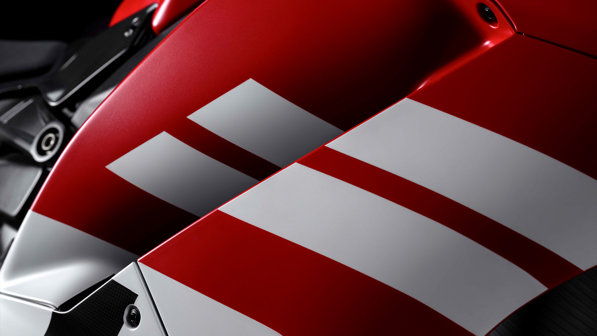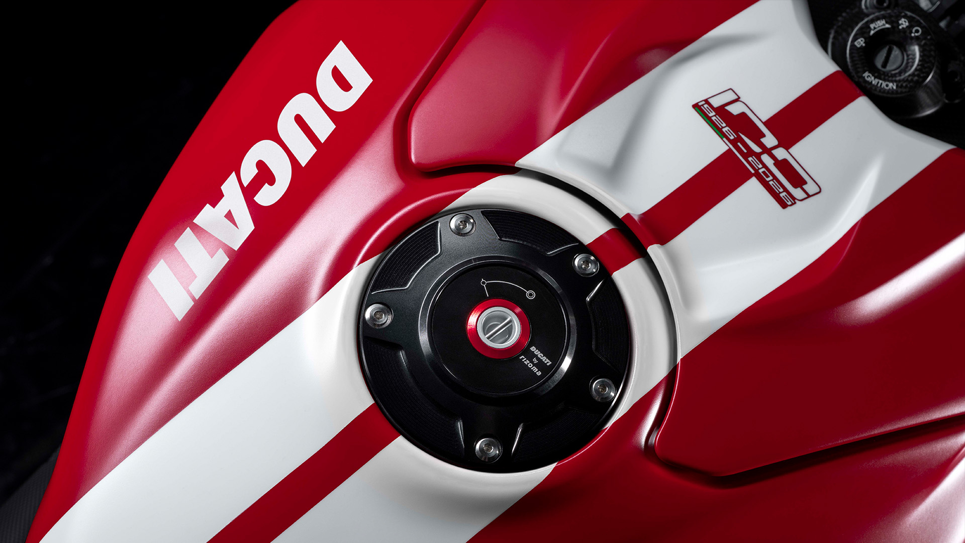Limitowana do 500 numerowanych egzemplarzy edycja, oparta na siódmej generacji Superbike'a Ducati, wyposażona w podwozie w całości wykonane z włókna węglowego i debiutująca z karbonowo-ceramicznym tarczami hamulcowymi oraz widelcem z goleniami z włókna węglowego. To pierwszy motocykl dopuszczony do ruchu drogowego, w którym zastosowano takie rozwiązania, a także pierwszy, który może osiągnąć moc 228 koni mechanicznych, która wzrasta do 247 koni mechanicznych z wyścigowym wydechem*. Masa własna bez paliwa wynosi zaledwie 173 kg, spadając do 167 kg po wyposażeniu w standardowy zestaw wyścigowy. Każdy element z włókna węglowego, każda tytanowa śruba, każdy drobny wybór ma na celu dążenie do perfekcji. To najbliższa niemożliwemu rzecz, jaką kiedykolwiek odważyliśmy się stworzyć.