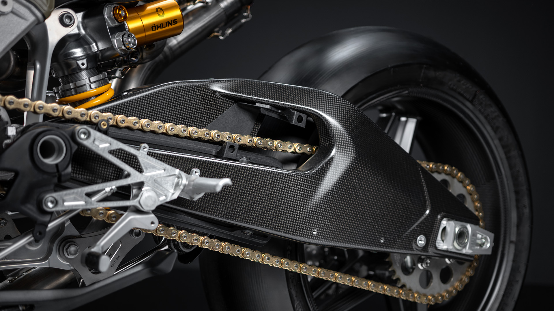 Łańcuch napędowy to DID ERV7, taki sam, jaki stosowany jest w fabrycznych zespołach Superbike. W połączeniu z zębatką wykonaną z Ergalu uzyskano redukcję masy zestawu napędowego o 0,69 kg w porównaniu z Panigale V4 S.