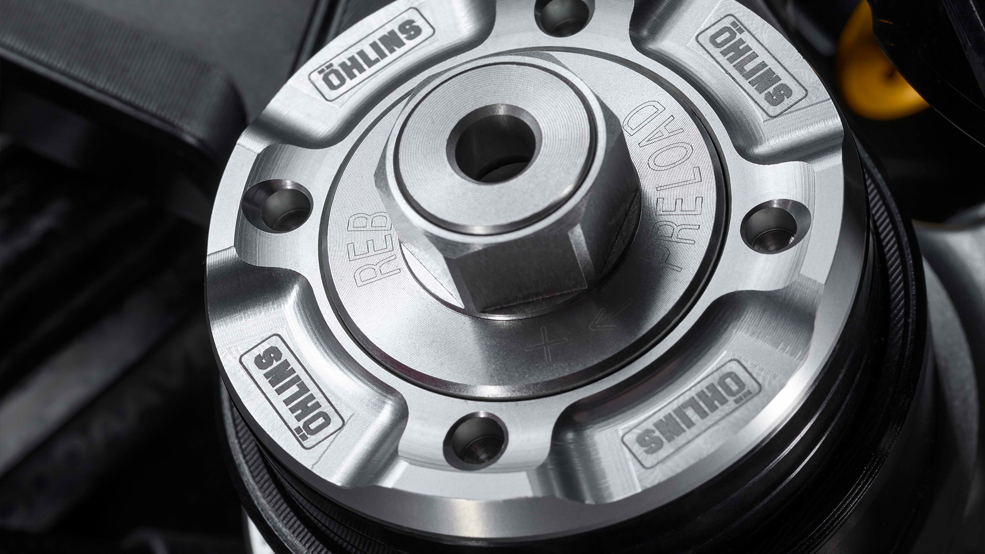 Tylny amortyzator Öhlins TTX36 GP LW wyposażony jest w specjalną, lekką sprężynę oraz wewnętrzne zawory zapożyczone wprost z MotoGP, które poprawiają zdolność do pokonywania drobnych nierówności i umożliwiają łatwą regulację bez użycia narzędzi. Elementy zawieszenia zostały wykonane z tytanu dla zapewnienia maksymalnej lekkości.