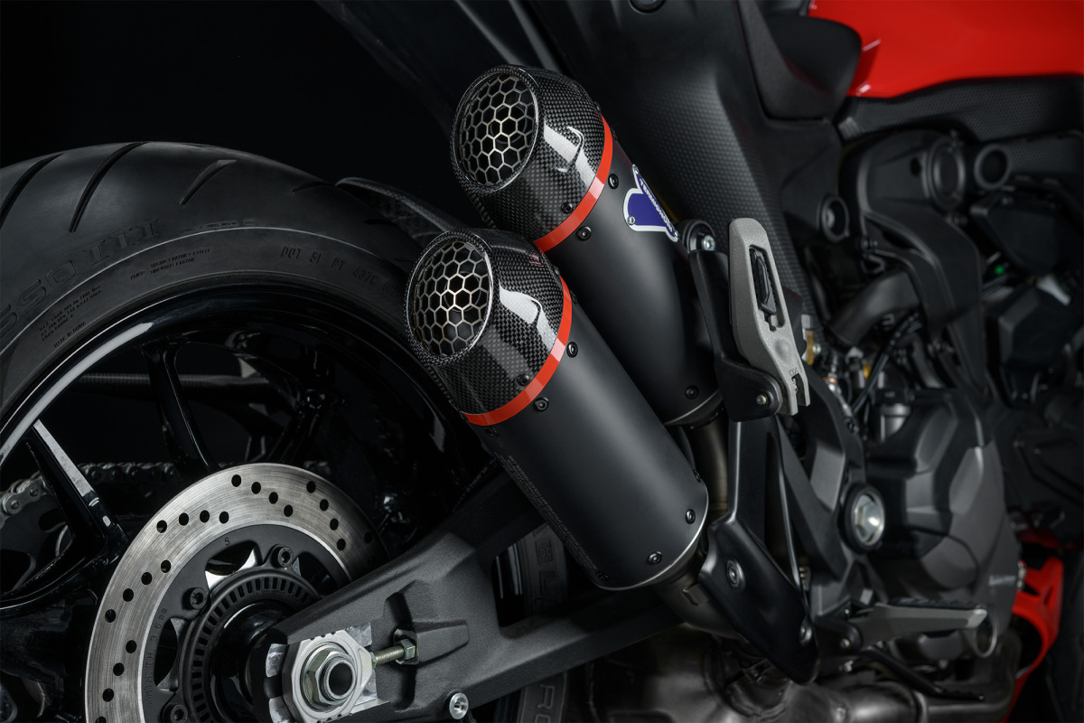 Homologowany tłumik opracowany we współpracy z firmą Termignoni zapewnia emocje już od pierwszego spojrzenia. Włókno węglowe użyte w konstrukcji tego akcesorium jeszcze mocniej podkreśla sportowy charakter motocykla. Końcówka Termignoni poprawia nie tylko wygląd motocykla, ale też pozytywnie wpływa na wrażenia akustyczne. Jednocześnie spełnia wszystkie aktualne przepisy UE dotyczące jazdy po drogach publicznych. Końcówkę układu wydechowego o szacowanej wartości 8000 złotych dodajemy teraz do każdego nowego Monstera i Monstera Plus. Nie czekaj i zamów swój wymarzony motocykl na przyszły sezon już teraz, bo taka oferta może się już nie powtórzyć!