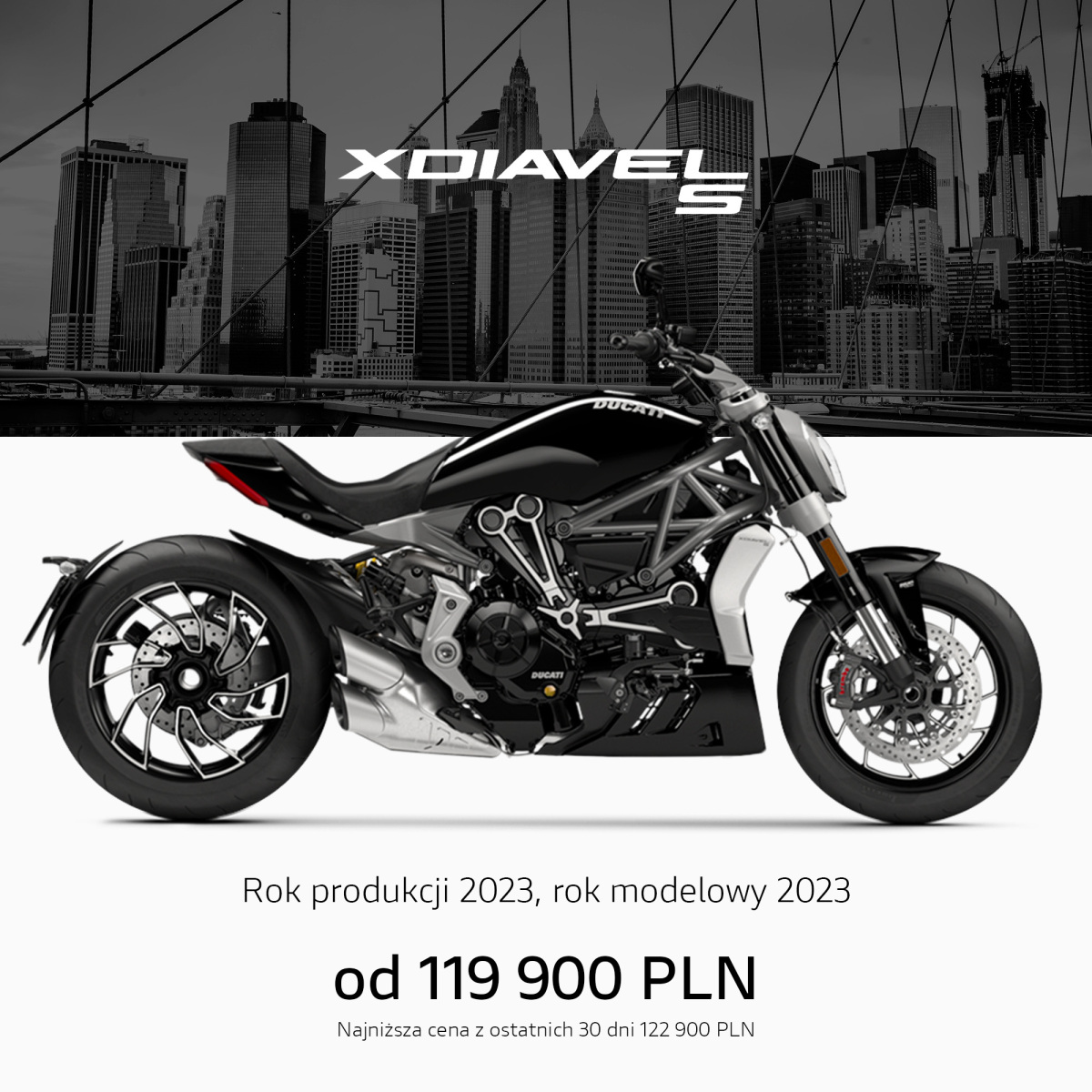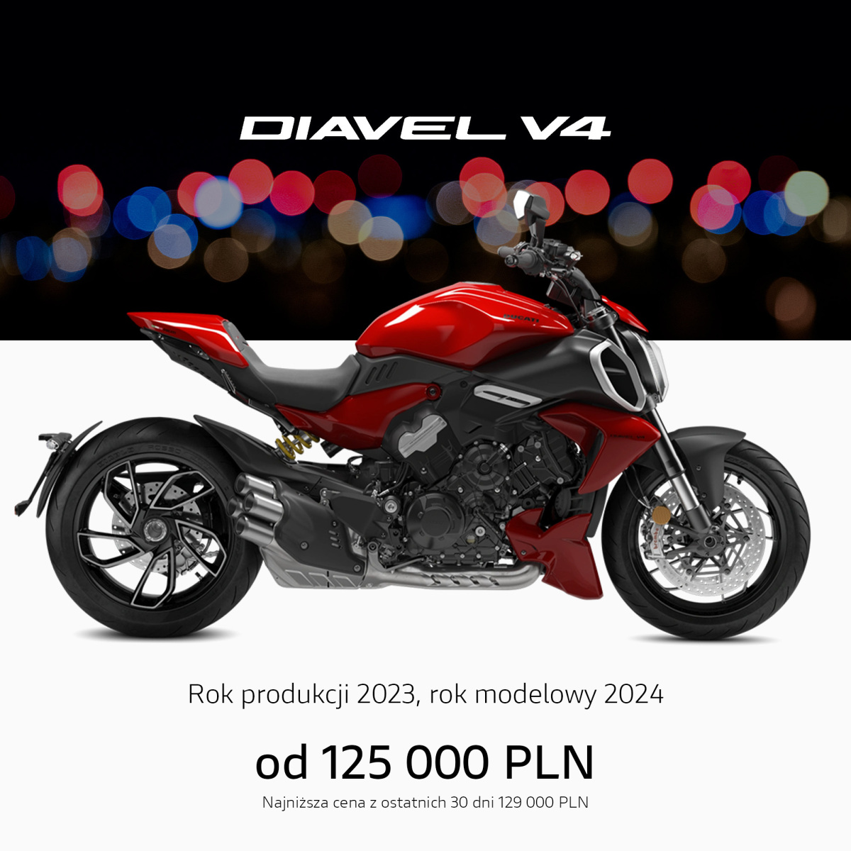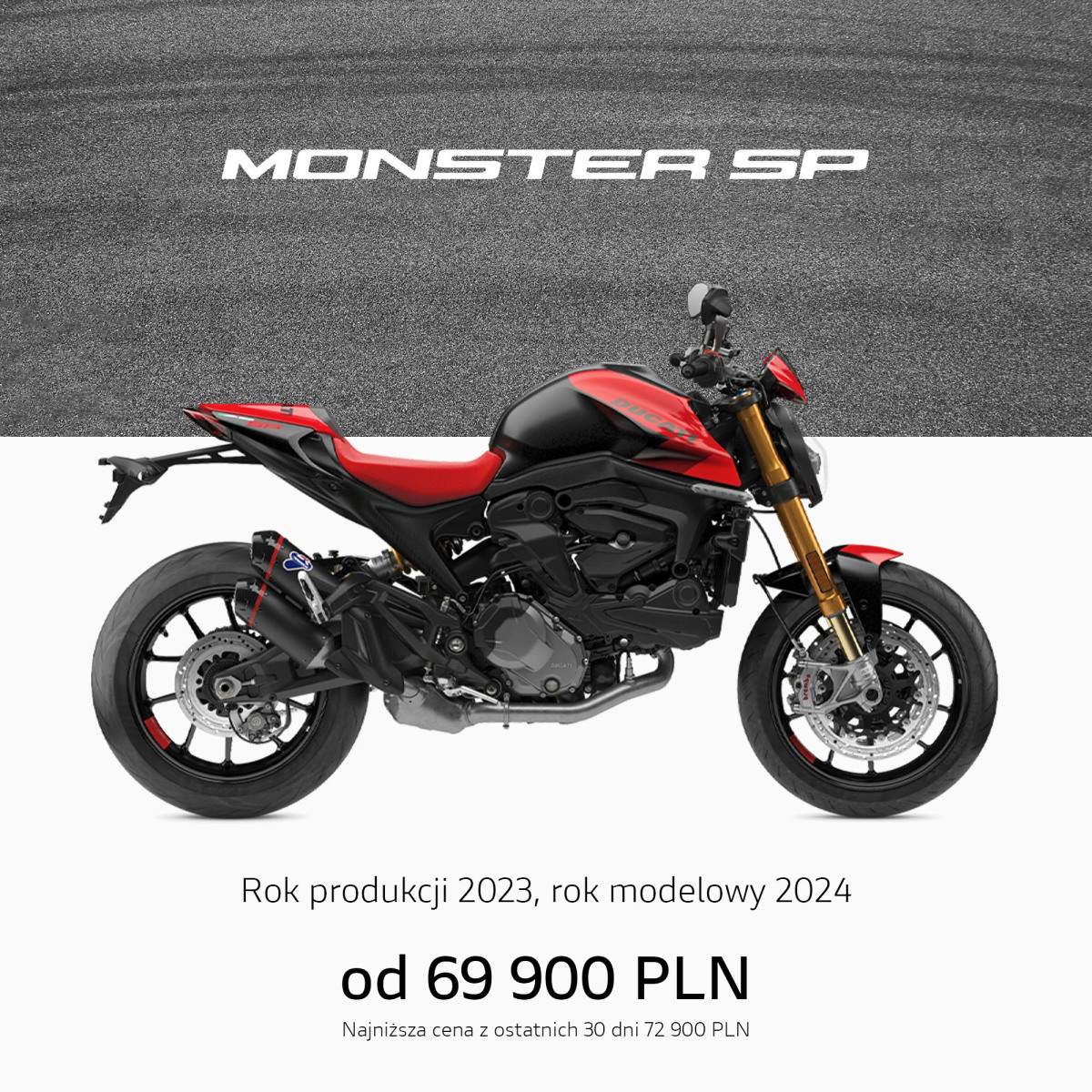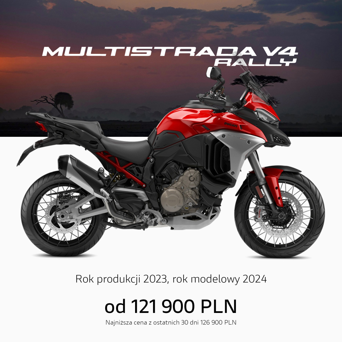 Informujemy, że podane ceny mają wyłącznie charakter informacyjny, a dystrybutor zastrzega prawo do ich zmiany. Liczba egzemplarzy objętych specjalnymi cenami jest ograniczona, a mistrzowską ofertę można otrzymać we wszystkich stacjach dealerskich Ducati w Polsce. Oferta obowiązuje do wyczerpania zapasów i nie łączy się z pozostałymi akcjami promocyjnymi.
