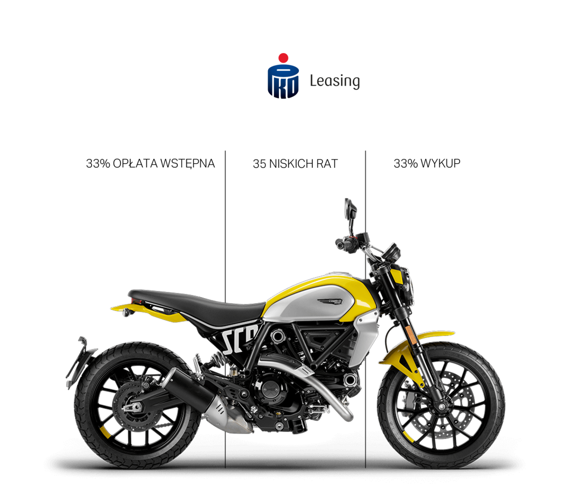 W ramach oferty finansowania przygotowanej we współpracy z PKO Leasing wybrane modele Scramblera dostępne są teraz w niskich ratach miesięcznych. Ramowe parametry oferty obejmują trzy założenia: