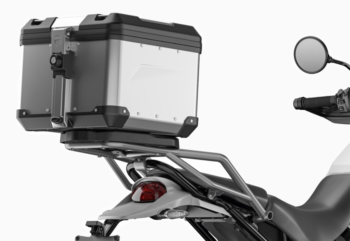 Dedykowany kufer centralny do modeli DesertX i DesertX Rally stanowi idealne połączenie funkcjonalności i wyrafinowanego designu. Wykonany jest z aluminium i dzięki wysokiej jakości anodowaniu zachowuje naturalny kolor z biegiem czasu. Pojemność 41 litrów i regularne kształty zapewniają komfort podczas każdej przygody na dwóch kołach, a stelaż wykonany ze stali nierdzewnej gwarantuje maksymalną stabilność kufra i bezpieczny montaż plug&play. Zestaw o szacowanej wartości 5436 złotych dodajemy teraz do każdego nowego motocykla DesertX i DesertX Rally. Zamów swój wymarzony motocykl, zapakuj się na wakacje i ruszaj w nieznane!