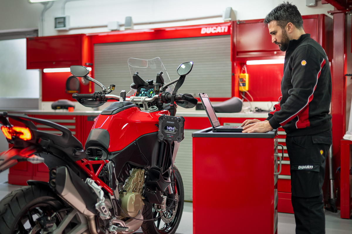 • pomoc w skonfigurowaniu aplikacji MyDucati w telefonie, dzięki której można szybko i łatwo uzyskać dostęp do historii serwisowej swojego motocykla i sprawdzić kolejny zaplanowany serwis