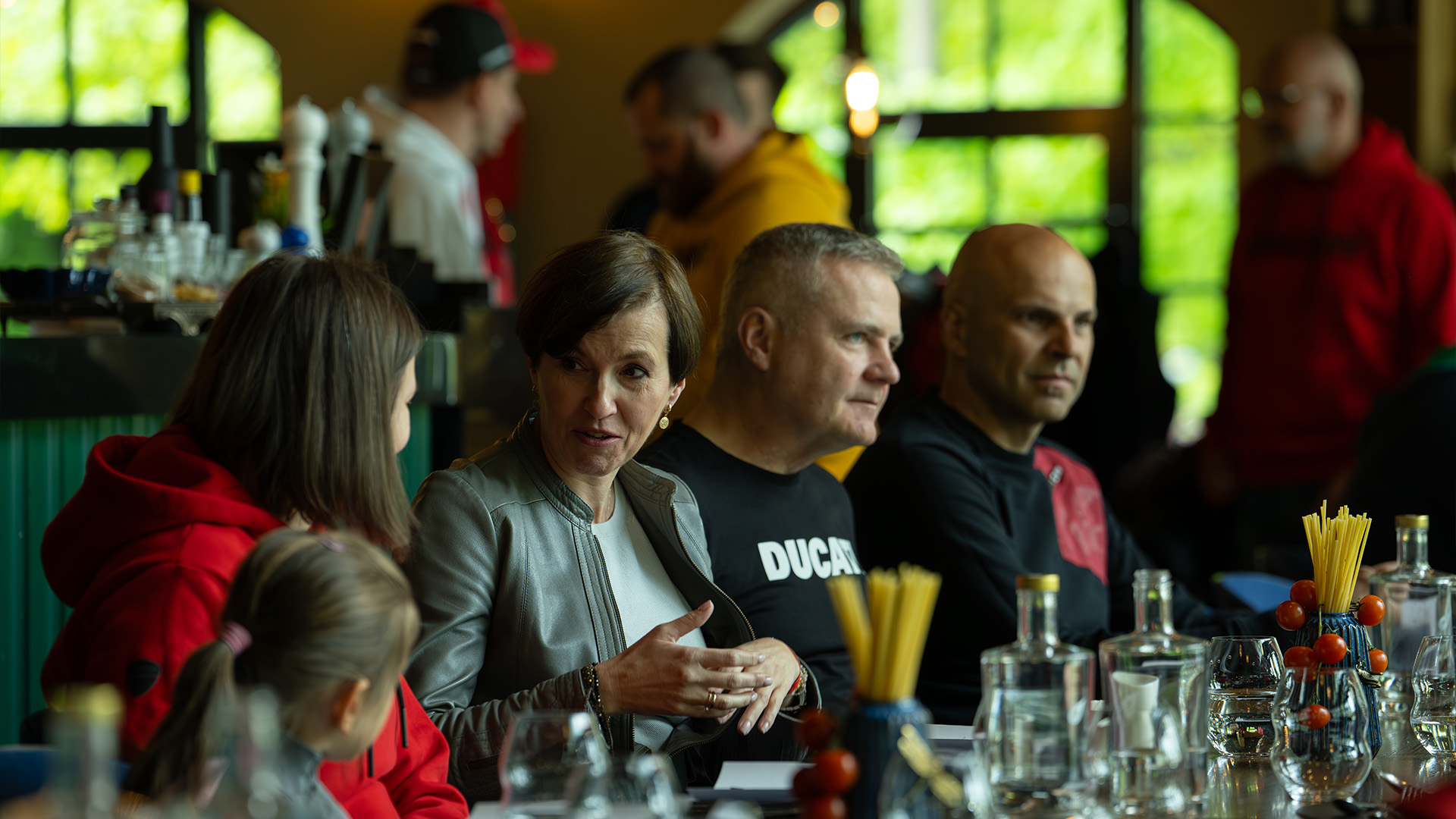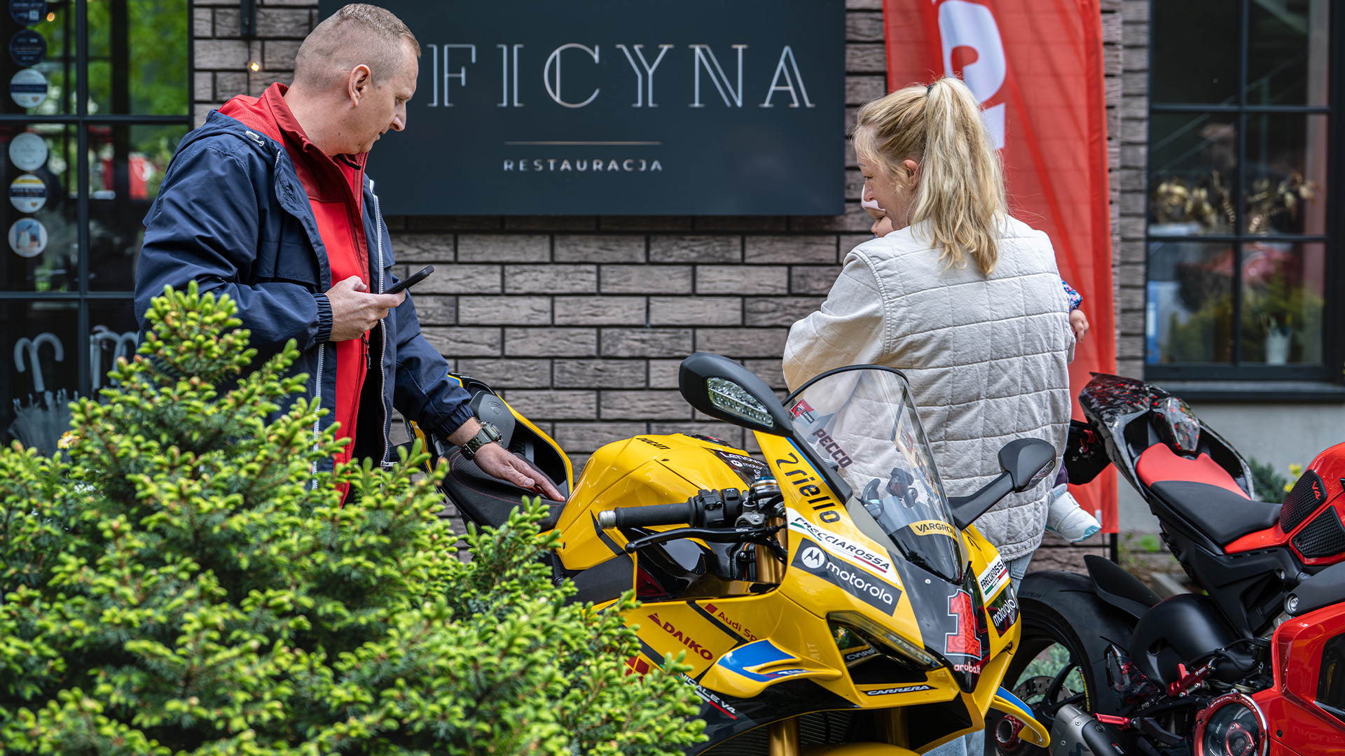 Motocykliści na Ducati parkowali w specjalnie wydzielonej strefie "Ducati parking only". Z Ducatisti spotkaliśmy się na wspólny obiad w zarezerwowanej na wyłączność Restauracji Oficyna, gdzie delektowaliśmy się włoskimi potrawami i pyszną kawą. Swoją obecnością zaszczycił nas Ambasador Włoch w Polsce, Jego Ekscelencja Pan Luca Franchetti Pardo wraz z Małżonką, a także German Carboni, Szef Biura ds. Ekonomiczno-Handlowych w Ambasadzie Włoch. Ambasador podziękował wszystkim zgromadzonym pasjonatom za miłość do Ducati, a tym samym umiłowanie do Włoch. Nie zabrakło też licznej reprezentacji klubowiczów z Ducati Klub Polska. Na tegorocznym wydarzeniu pojawiło się łącznie ponad 3000 osób.