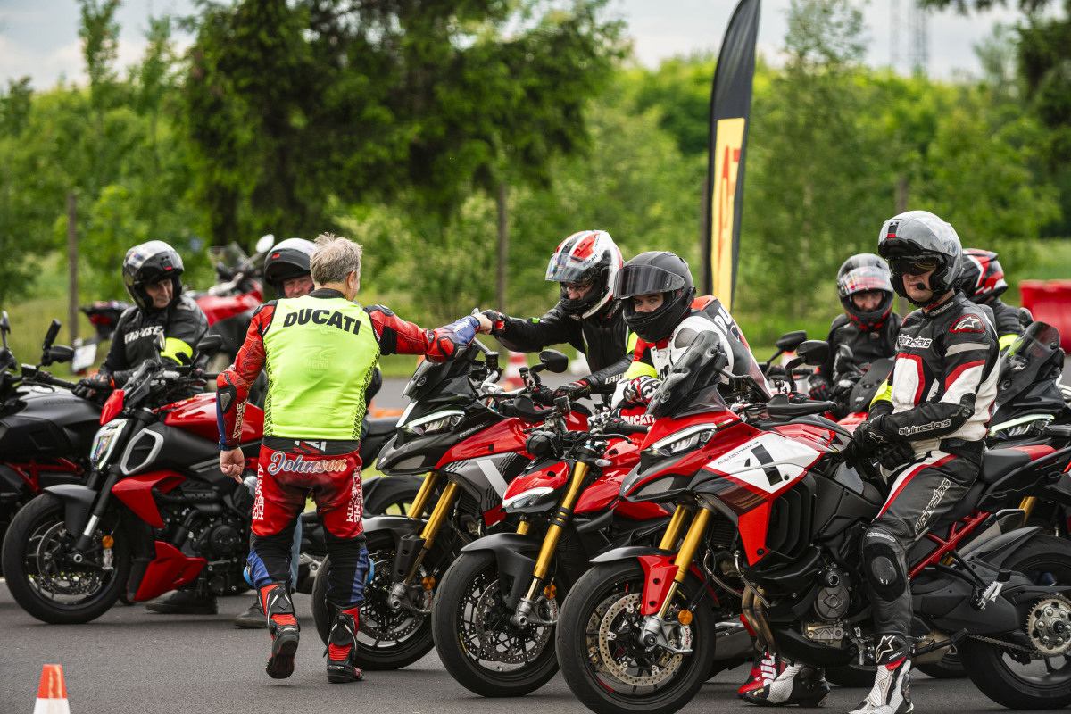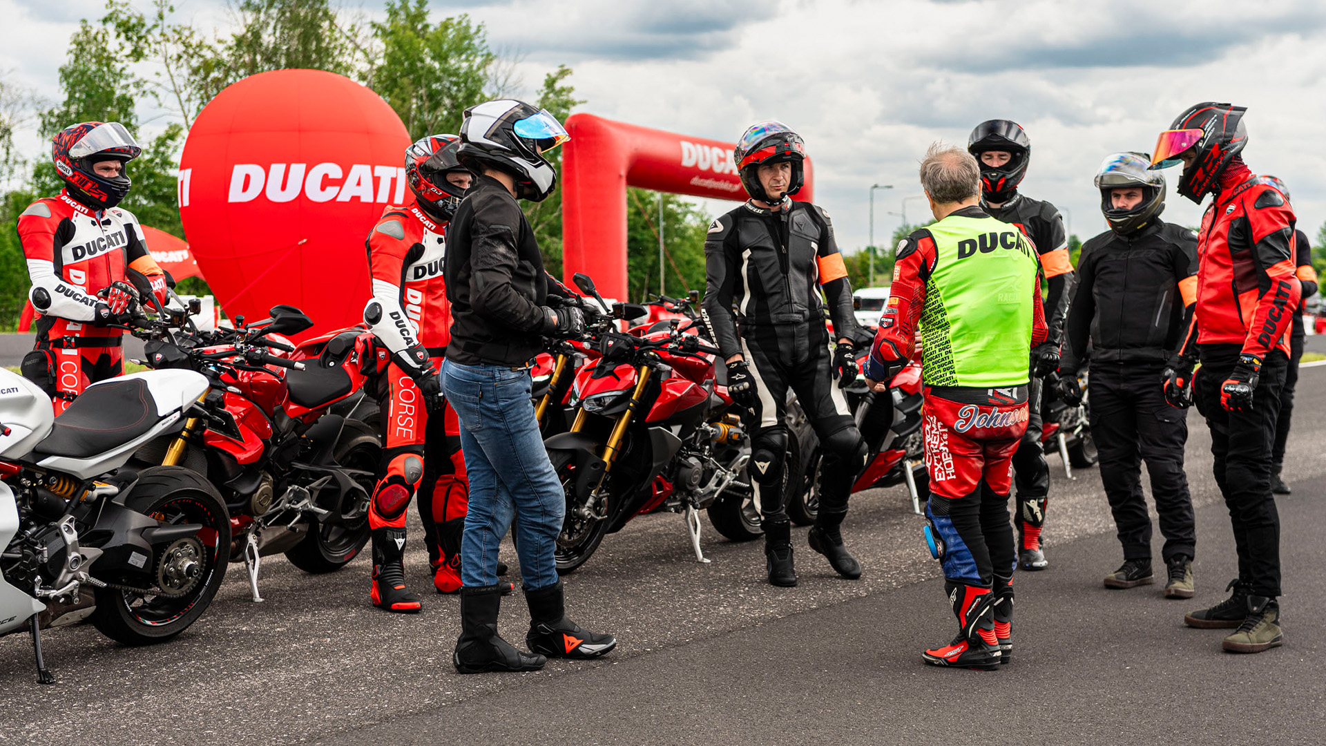 Niedzielne szkolenie Ducati Riding Experience Road Academy odbyło się w formule dnia otwartego. Do jednej z grup szkoleniowych zaprosiliśmy też motocyklistów posiadających motocykle innych marek niż Ducati. Wszyscy uczestnicy mieli możliwość testowania szerokiej gamy modelowej, w tym tegorocznych nowości, jak Panigale V2 i V4, Streetfighter V2 i V4, czy Multistrady V2, V4 i V4 Pikes Peak.
