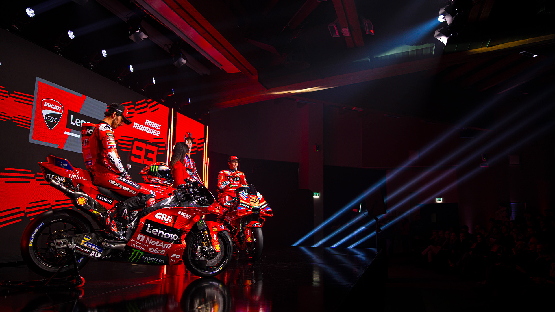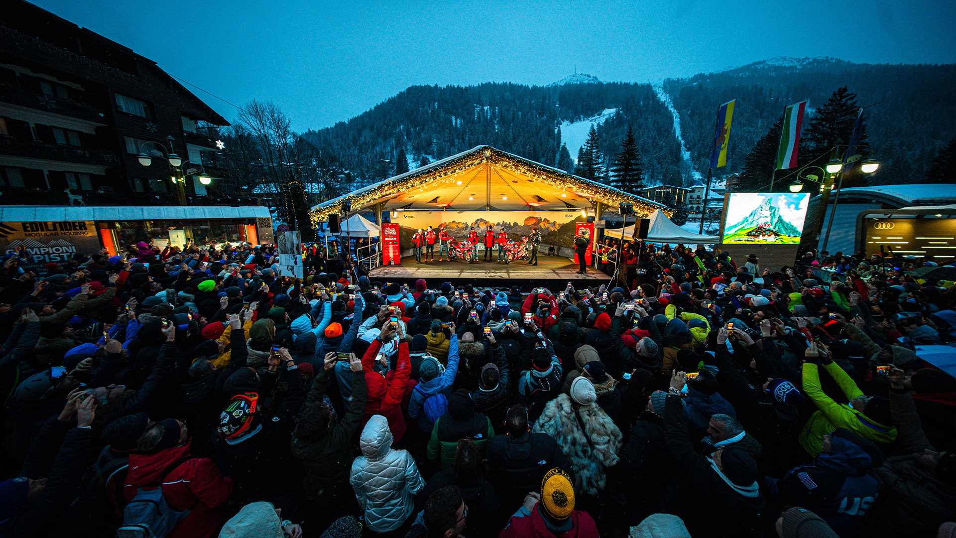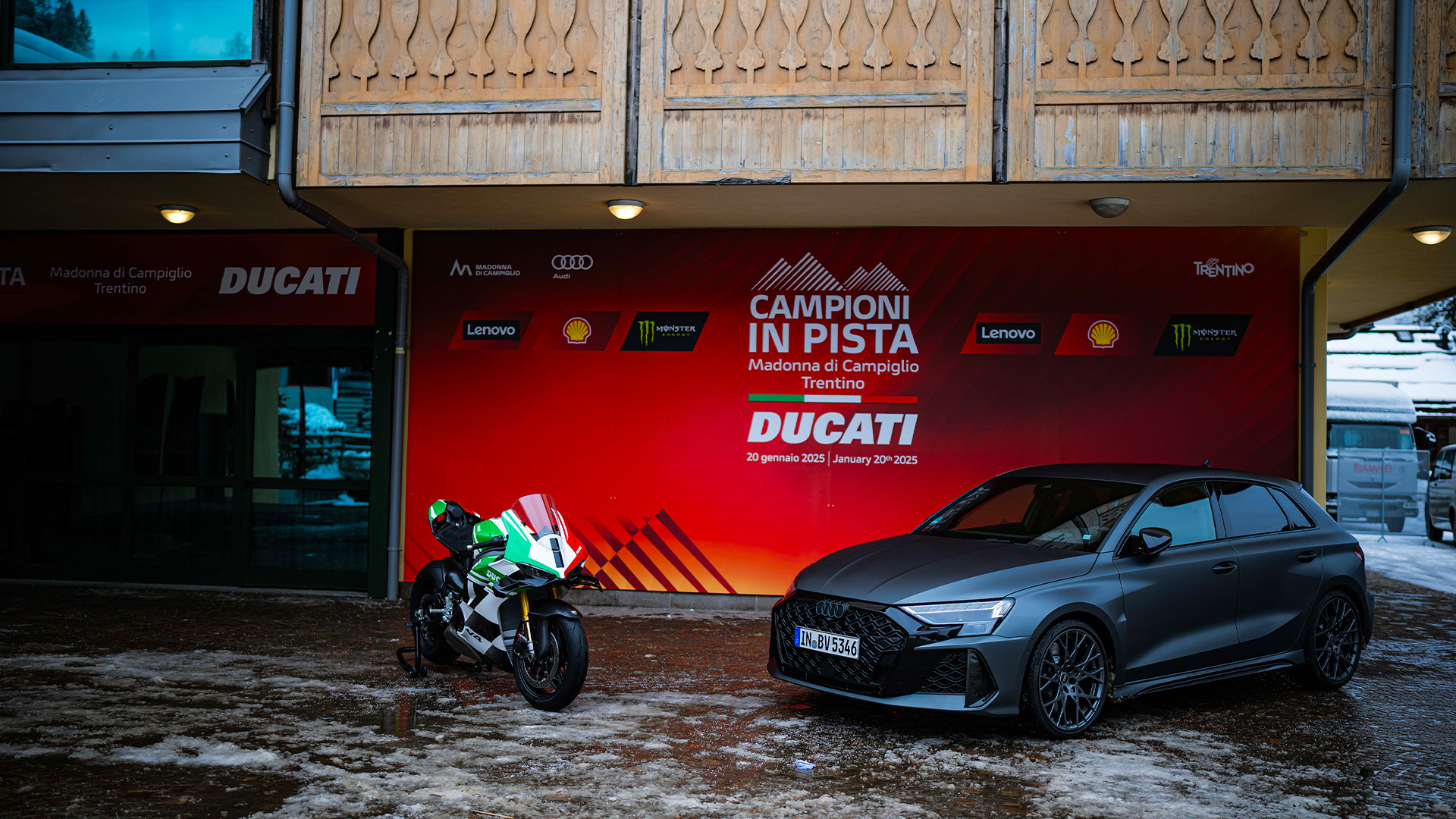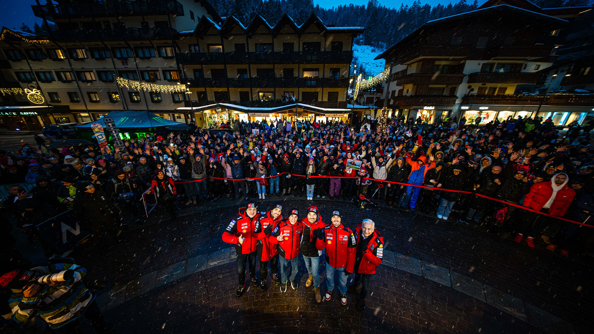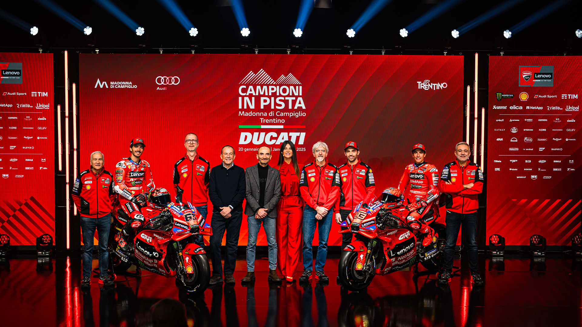 Bagnaia i Márquez byli niekwestionowanymi gwiazdami imprezy od momentu przybycia do Madonna di Campiglio w niedzielę 19 stycznia. Pierwszym spotkaniem była oficjalna prezentacja motocykla wyścigowego Desmosedici GP25 z numerami #63 i #93, która odbyła się w poniedziałek 20 stycznia w PalaCampiglio i transmitowana była na żywo na cyfrowych kanałach Ducati oraz w telewizji. Po południu obaj mistrzowie, w towarzystwie oficjalnego testera Ducati Michele Pirro, dyrektora generalnego Ducati Claudio Domenicali, dyrektora ds. sportu, marketingu i komunikacji Ducati Corse Mauro Grassilli oraz menadżera zespołu Davide Tardozzi, spotkali się z fanami, którzy zgromadzili się na Piazza Sissi. We wtorek 21 stycznia Bagnaia, Márquez oraz całe kierownictwo Ducati i Ducati Corse cieszyli się wspaniałym dniem na stoku, rzucając sobie nawzajem wyzwania w ekscytującym wyścigu narciarskim. W porze lunchu odbył się pierwszy wywiad z obydwoma zawodnikami w wymarzonym otoczeniu przyrody, na wysokości 1750 m n.p.m., z widokiem na ośnieżone szczyty Dolomitów. Reprezentanci Ducati Lenovo Team odpowiedzieli na kilka pytań dotyczących nadchodzącego sezonu i ich przyszłości jako członków zespołu.