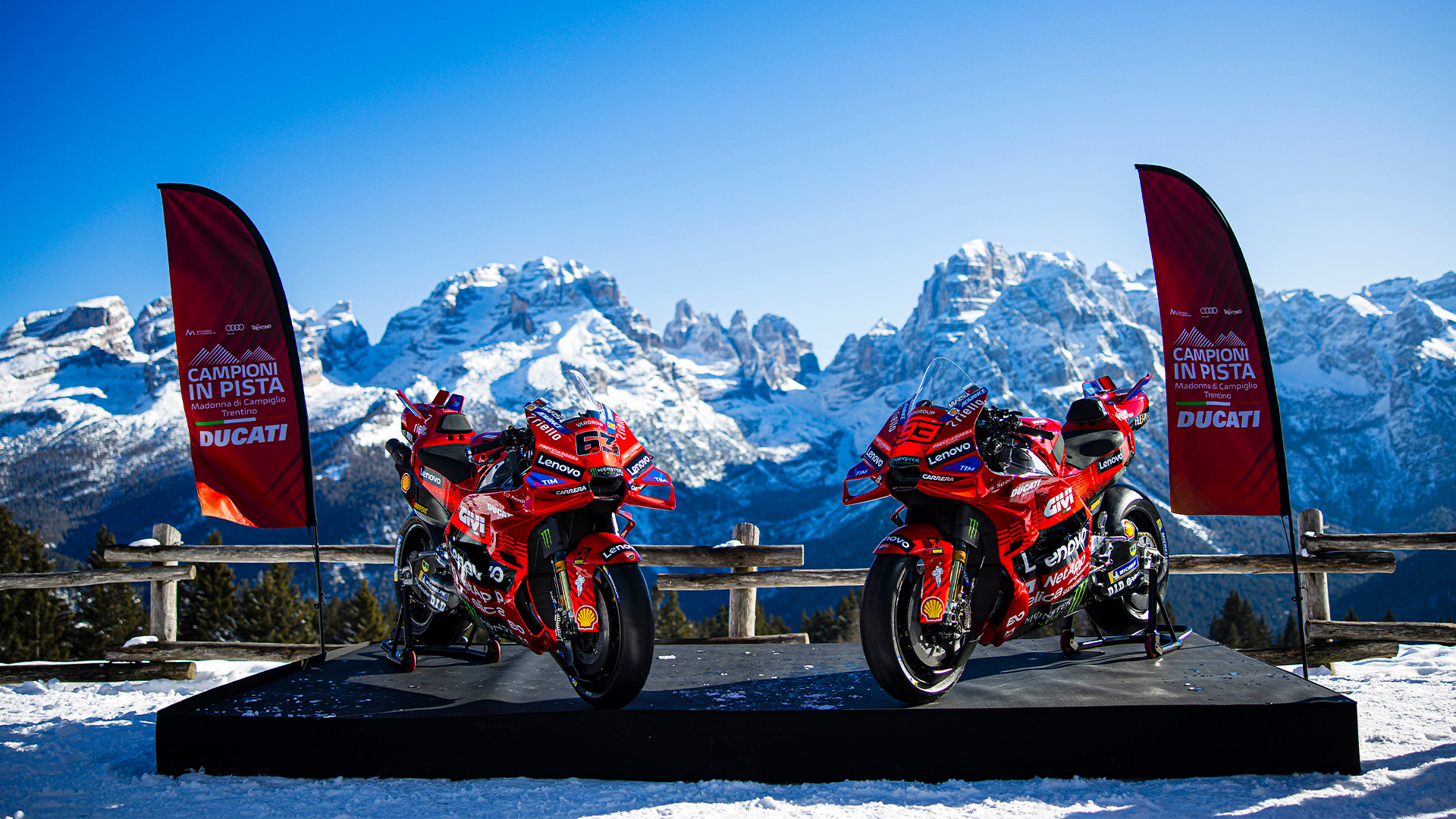 Trzeci rok z rzędu sezon wyścigowy Ducati rozpoczął się w miejscowości Madonna di Campiglio. Producent z Bolonii wybrał wyjątkowe miejsce w Dolomitach, które jest w stanie wyrazić piękno i dumę z reprezentowania włoskiej marki, aby zaprezentować światu zespół Ducati Lenovo Team, który weźmie udział w sezonie MotoGP 2025. Francesco Bagnaia i Marc Márquez to „Dream Team”, którego nie trzeba przedstawiać – zawodnicy na swoim koncie posiadają łącznie 11 tytułów mistrzowskich.
