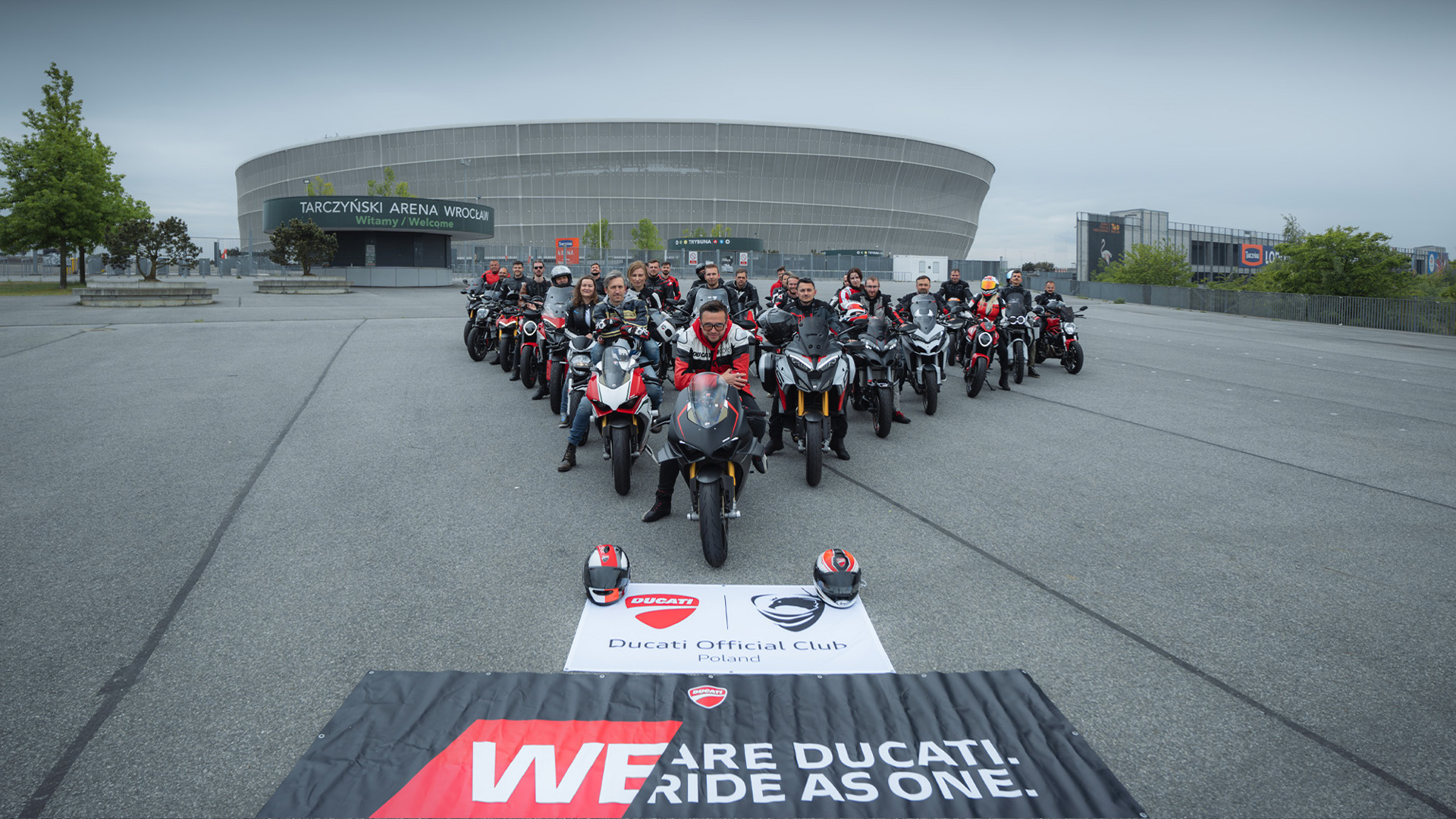 Dealerzy Ducati z całego świata wraz z przedstawicielami Oficjalnych Klubów Ducati współpracują nad stworzeniem unikalnych programów i organizacją wydarzeń We Ride As One. Naszą pasję do jazdy na motocyklach z Borgo Panigale ponownie pokażemy na ulicach miast, w których zlokalizowane są stacje dealerskie Ducati. W Polsce odbędzie się dziewięć wydarzeń – w Warszawie, Krakowie, Wrocławiu, Łodzi, Poznaniu, Trójmieście, Szczecinie, Katowicach i Toruniu. Zaplanowaliśmy ciekawe przejażdżki, wspólne aktywności i wiele innych atrakcji, które sprawią, że We Ride As One stanie się wydarzeniem, którego nie można przegapić. Zobacz zeszłoroczna relację z We Ride As One w polskich miastach.