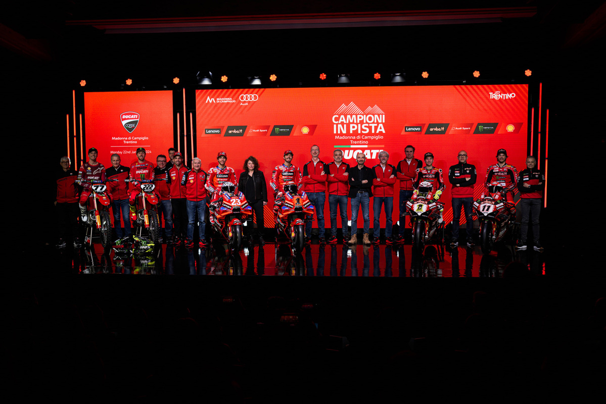 Oficjalna prezentacja zespołów Ducati odbyła się w poniedziałek 22 stycznia 2024 roku w PalaCampiglio i transmitowana było na żywo na kanałach cyfrowych Ducati. Ten moment był doskonałym dowodem na to, że wyścigi są centralnym elementem strategii Ducati. Zaprezentowany został zespół Ducati Lenovo Team rywalizujący w MotoGP i Aruba.it - Racing Ducati w World Superbike. Całkowitą nowością było pojawienie się pierwszego historycznego zespołu Ducati Corse R&D - Factory MX Team, co oznacza początek nowego rozdziału dla Borgo Panigale w motocrossie.
