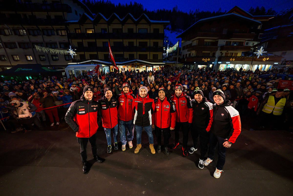 Po prezentacji zawodnicy Ducati spotkali się z fanami w centrum Madonna di Campiglio. Tłum wiwatował, gdy na scenie ustawionej na Piazza Sissi pojawili się trzej Mistrzowie Świata – Francesco Bagnaia, Álvaro Bautista i Nicolò Bulega. Tłumy kibiców powitały też Eneę Bastianiniego i zawodników projektu motocrossowego. Antonio Cairoli znany jest z wygrania dziewięciu Mistrzostw Świata FIM Motocross, a Alessandro Lupino był ośmiokrotnym mistrzem Włoch. Po raz pierwszy publicznie pokazano też wszystkie motocykle, które będą rywalizować w sezonie 2024: Desmosedici GP zespołu Ducati Lenovo Team, Panigale V4 R zespołu Aruba.it - Racing Ducati Team i prototyp R&D - Factory MX Team, czyli Desmo450 MX, który zadebiutuje w Motocrossowych Mistrzostwach Włoch.