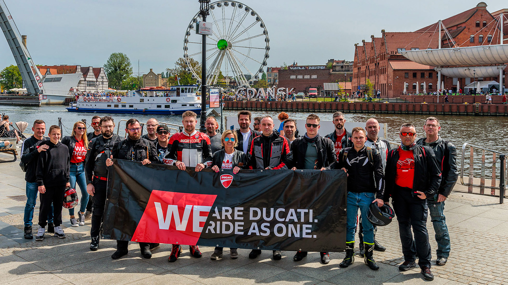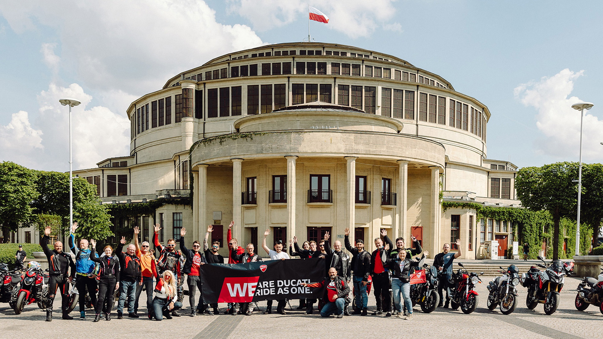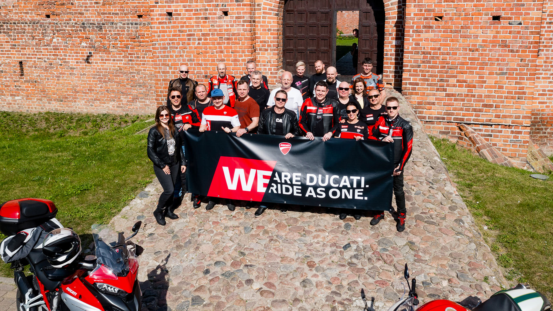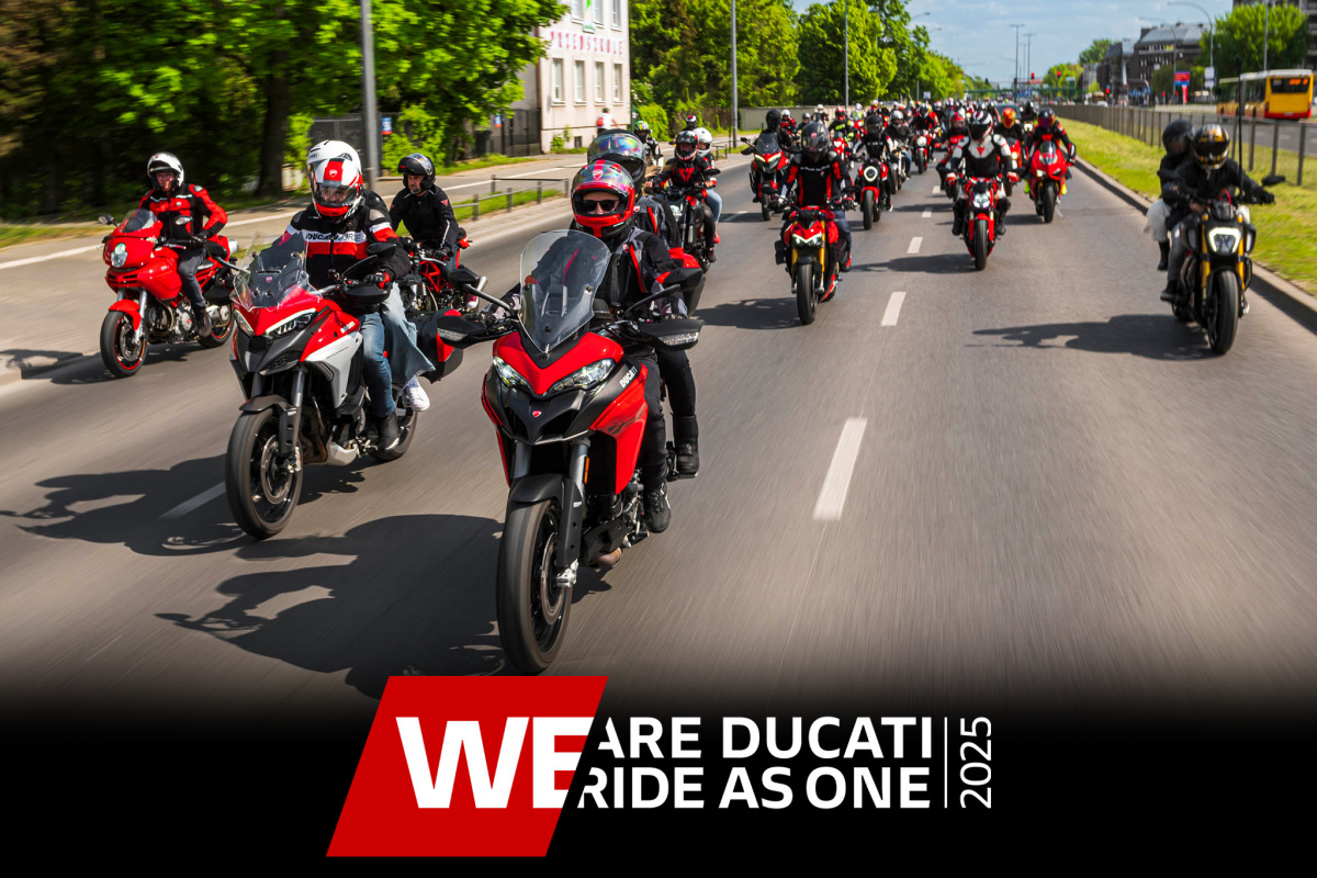 Dealerzy Ducati z całego świata przy wsparciu Oficjalnych Klubów Ducati (DOC) już pracują nad organizacją programu We Ride As One. Ducatisti z całego świata na ulicach swoich miast znów pokażą dumę z przynależności do wielkiej Rodziny i pasję do jazdy na motocyklach produkowanych w Borgo Panigale. Parady corocznie odbywają się między innymi we Florencji, w Rzymie, Londynie, Dublinie, Madrycie, Tokio, Monachium, Szanghaju, Dubaju, Rio de Janeiro, New Delhi, Bangkoku, Amsterdamie i Sydney. W Polsce Ducatisti spotykają się w dziewięciu miastach, gdzie zlokalizowane są salony Ducati. Zobacz zeszłoroczna relację z We Ride As One w polskich miastach.