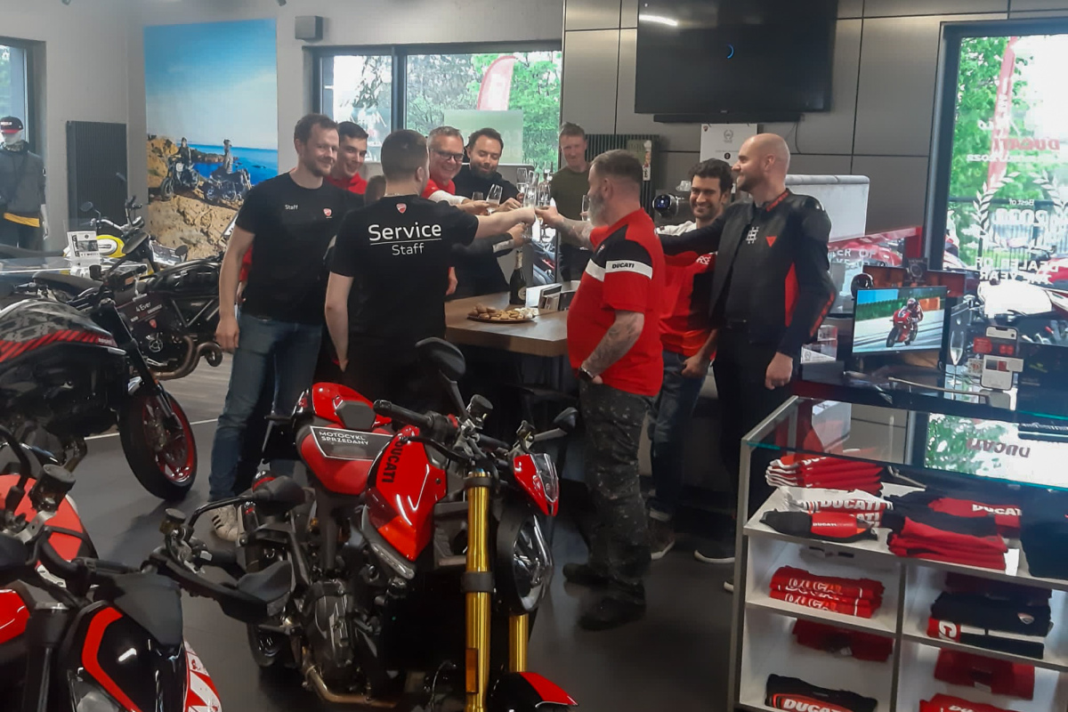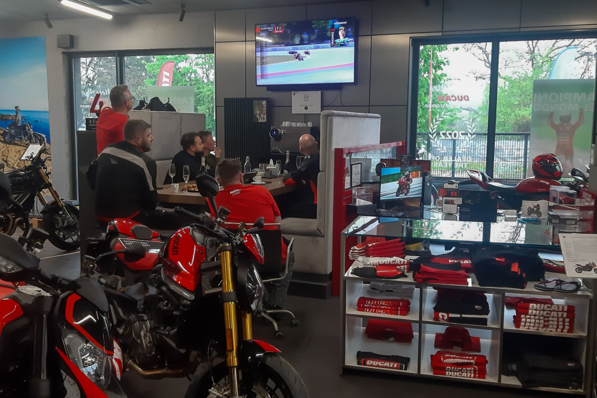 Na całym świecie, a także w każdym z ośmiu polskich miast, gdzie zlokalizowane są salony Ducati, odbyły się wydarzenia z unikalnym programem dla Ducatisti. Niestety, złe warunki atmosferyczne tego dnia wystąpiły na wielu obszarach Polski, ale udało się nam nieco rozpogodzić ulice Warszawy, Wrocławia, Katowic i Łodzi. Ducatisti biorący udział w paradzie wyruszającej z Gdańska, którym towarzyszyła najlepsza pogoda, zakończyli przejazd na Autodromie Pomorze, gdzie mogli trenować na torze. W Toruniu i Krakowie, ze względu na niesprzyjającą aurę, odbyły się spotkania w salonach, podczas których można było między innymi obejrzeć transmisję zwycięskiego dla Alvaro Bautisty wyścigu WSBK w Barcelonie. Ducatisti z województwa zachodniopomorskiego odwiedzili nowy, autoryzowany serwis Ducati w Szczecinie, gdzie wkrótce otwarty będzie również nowy salon.