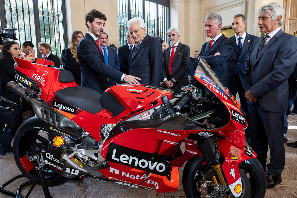 Dzięki prestiżowemu spotkaniu w Rzymie, świętowanie zdobycia potrójnej korony MotoGP przez Ducati wciąż trwa. Sergio Mattarella, Prezydent Republiki Włoskiej, przyjął Francesco Bagnaia wraz z zespołem Ducati Corse i delegacją Ducati w Pałacu Prezydenckim na Kwirynale.