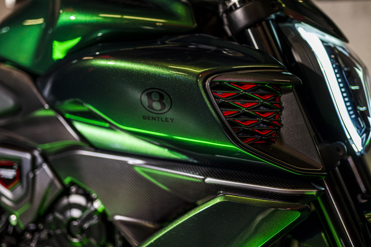 Muskularne linie Diavela V4 zostały podkreślone przez bogaty w metaliczne odcienie kolor Scarab Green, który pochodzi z palety Bentley Mulliner. Wiele charakterystycznych cech modelu Bentley Batur zostało wykorzystanych w różnych elementach motocykla i są to między innymi kute felgi, które kształtem przypominają te z samochodu, a dodatkowo zaprojektowane i stworzone zostały specjalnie na potrzeby tego modelu. Kunszt projektantów z Centro Stile Ducati zachwycił wszystkich.