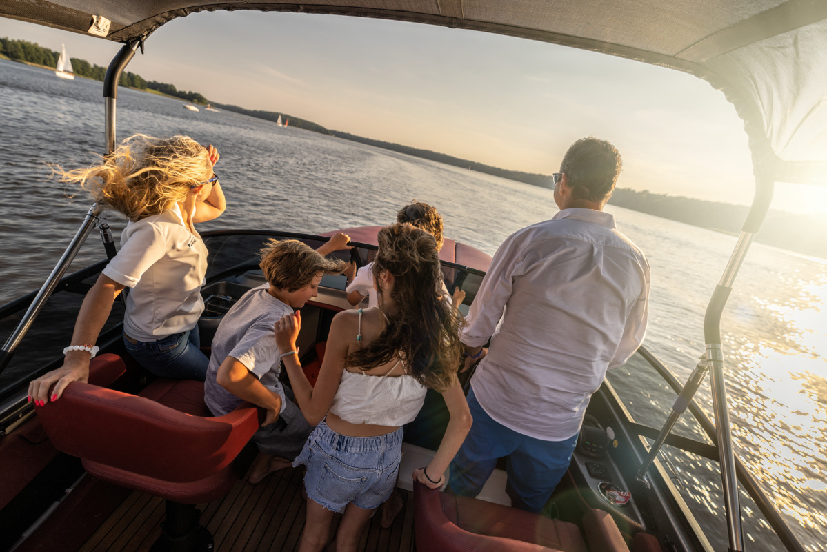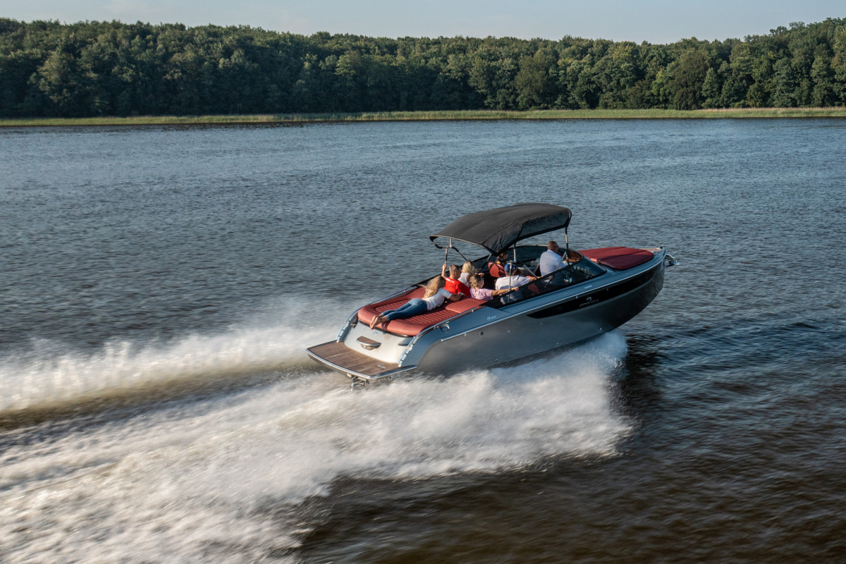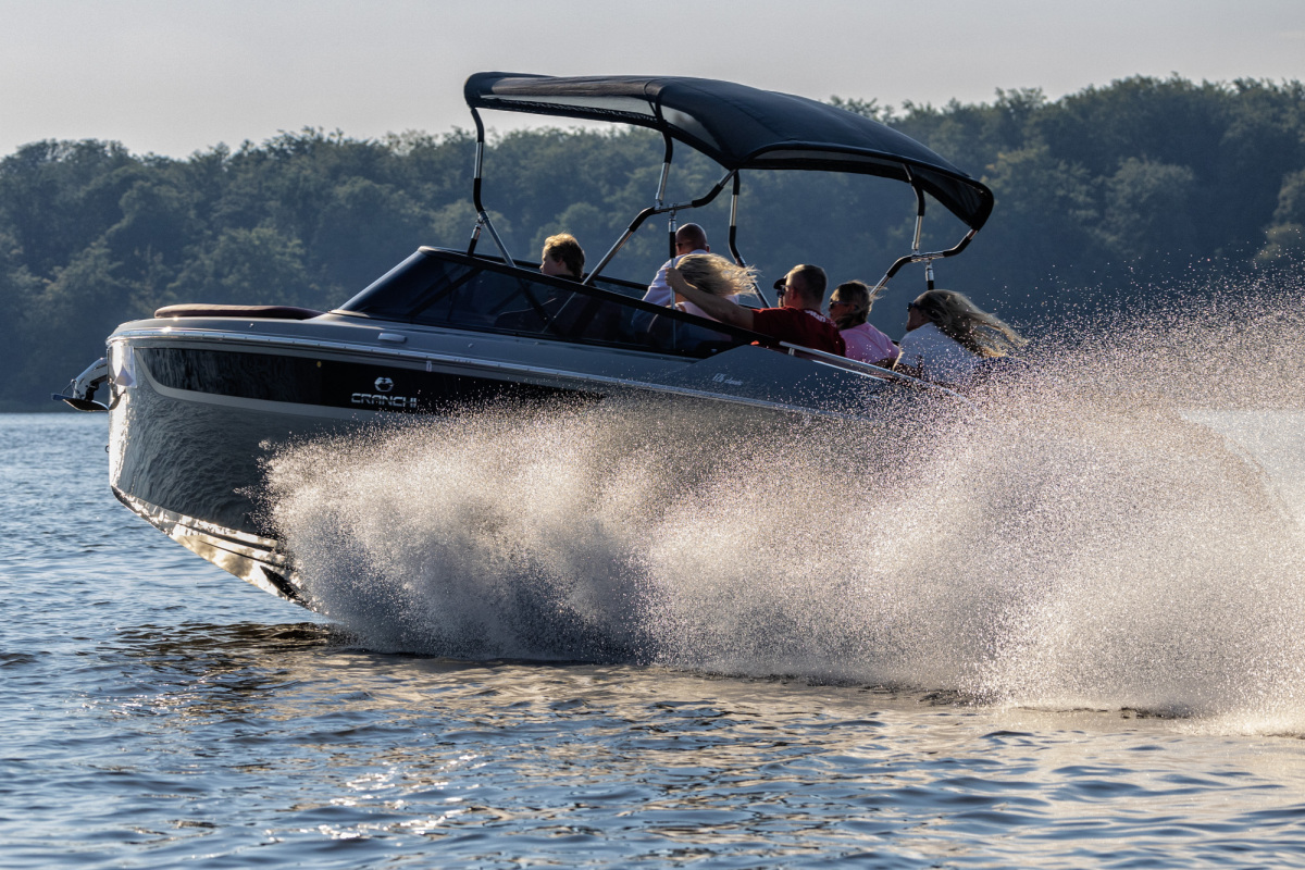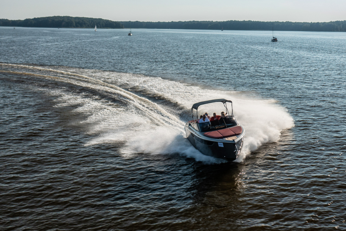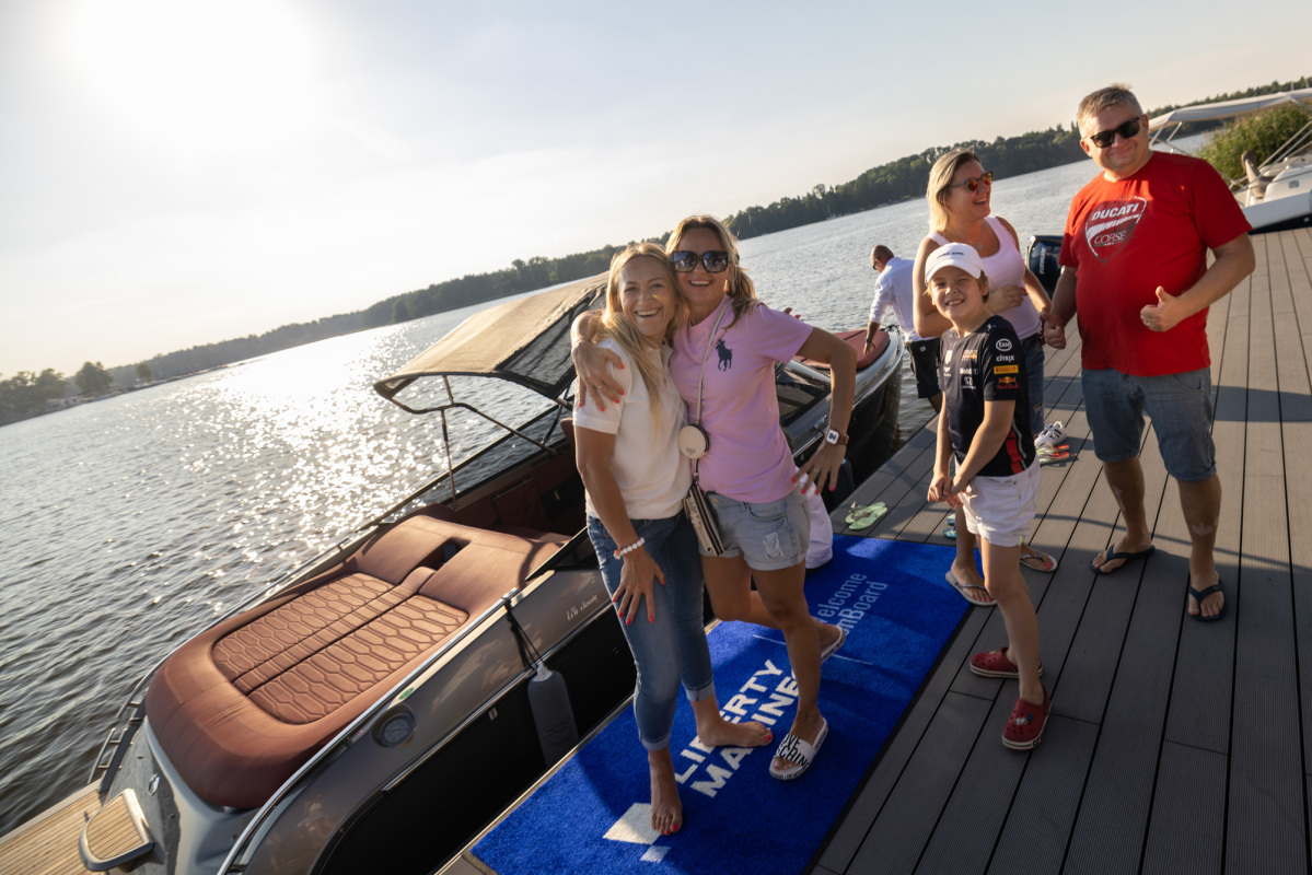 Goście podzieleni na trzy grupy wymieniali się według harmonogramu między testowaniem motocykli i samochodów, a także rejsem łajbą Cranchi, która niedługo przed eventem odebrana została z włoskiej manufaktury niedaleko Lago di Como. Co ciekawe, było to pierwsze wodowanie łodzi E26 Classic na zbiorniku wodnym w Polsce. Uczestnicy mieli zatem wyjątkową możliwość jako pierwsi w kraju poczuć wolność, jaką daje ośmiocylindrowy silnik Volvo Penta. Piękna, klasyczna łódź o sportowym charakterze wyróżniała się swoją elegancją pośród innych jachtów na Jezioraku.