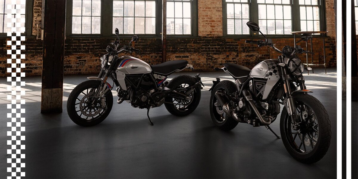 W strefie Scrambler, Ducati prezentuje dwa sugestywne zestawy o wyjątkowej estetyce dla tych, którzy chcą, aby ich Icon był jeszcze bardziej wyjątkowy. Zestaw Retro Stripe to prawdziwy hołd dla lat 70., epoki, która dała początek grafice opartej na prostych, ale dynamicznych liniach. Z kolei Old Skool Checkerboard to zestaw inspirowany wyścigami z grafiką nawiązującą do szachownicy – symbolu wolności, szybkości i buntowniczego ducha.