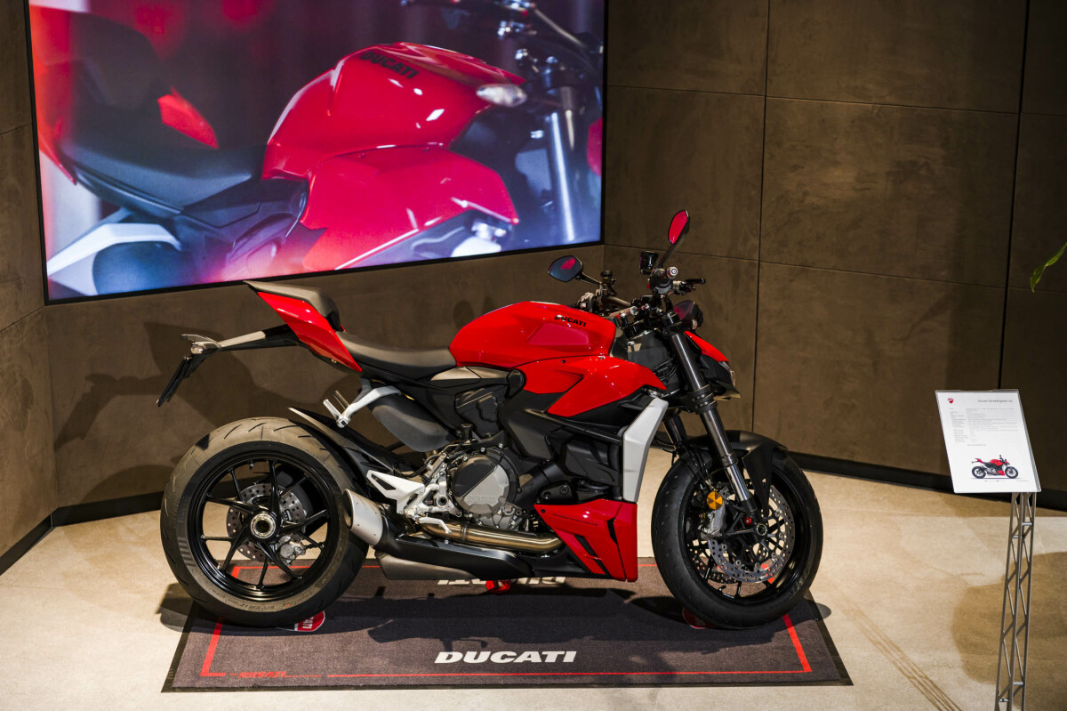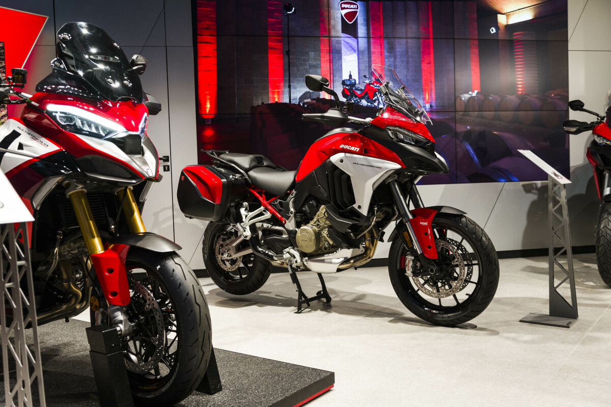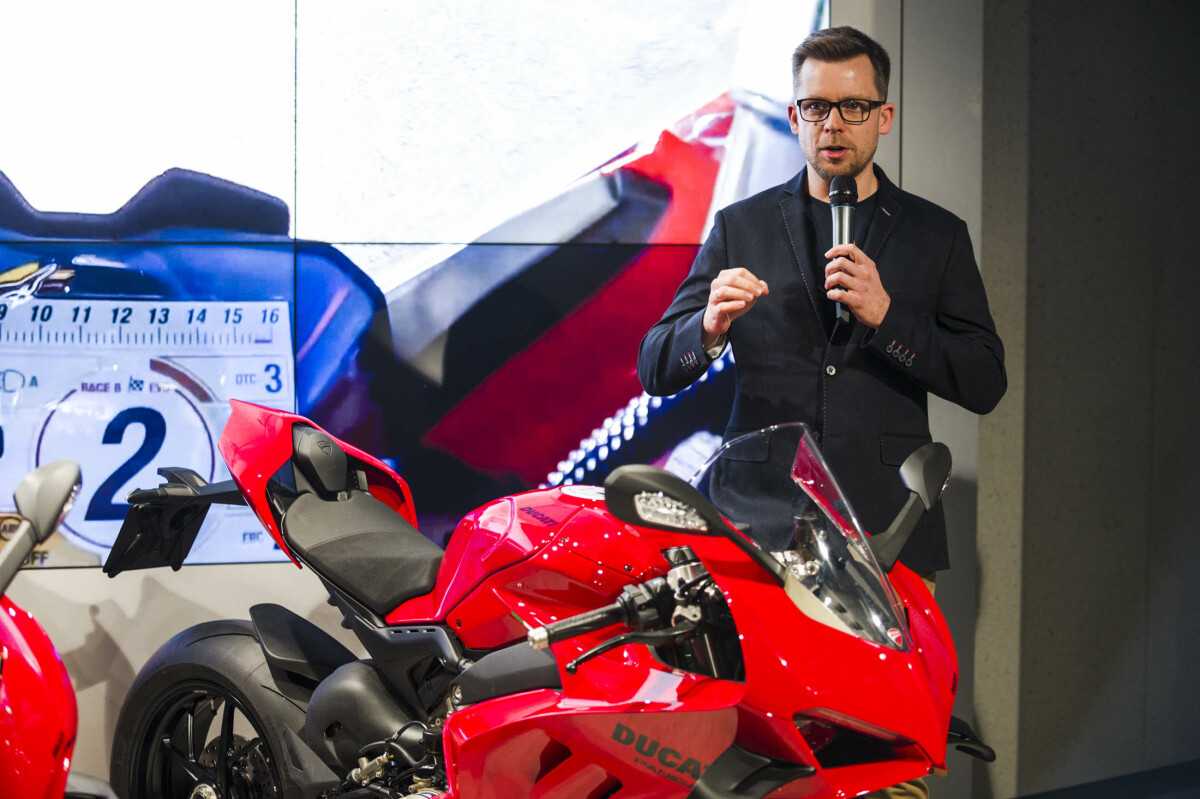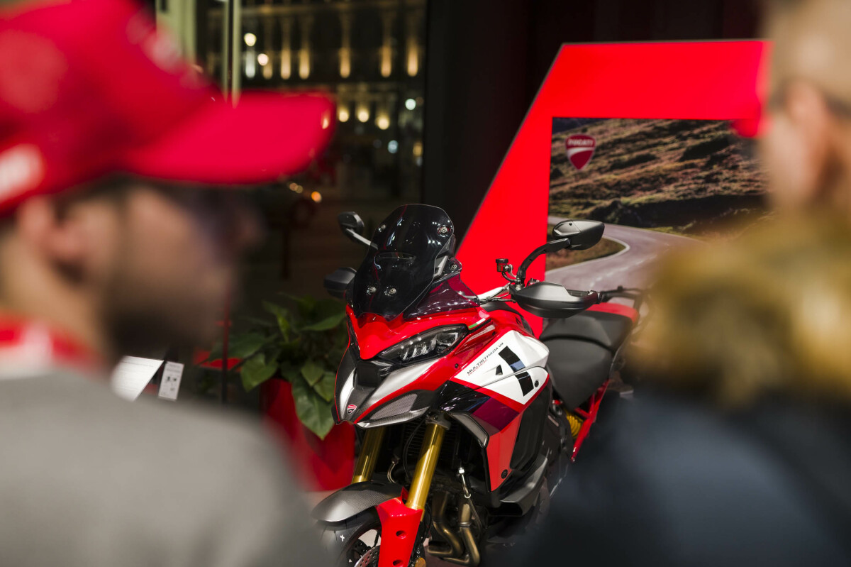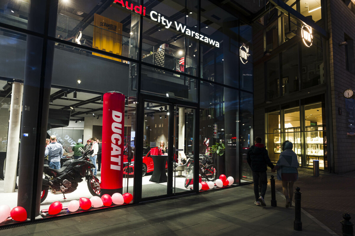 Tego wieczoru przestrzeń Audi City Warszawa wypełniła się czerwienią i najnowszymi modelami Ducati. Po raz pierwszy zaprezentowaliśmy Multistradę V4 Pikes Peak, a fani czterech pierścieni mogli podziwiać 400-konne Audi RS3 Sportback w kolorze przewodnim całego eventu. Goście i przedstawiciele mediów poznali też inne nowości na rok modelowy 2022, takie jak Streetfightera V2, Panigale V2 Bayliss 1st Championship 20th Anniversary, Multistradę V2, Panigale V4 i V4 S oraz Scramblera 1100 Tribute Pro, a także elektryczny rower Ducati TK-01 RR. O wrażeniach z jazdy Streetfighterem V2 i Panigale V4 opowiedział Andrzej Drzymulski, który brał udział w testach dziennikarskich tych modeli na torach w Hiszpanii, a o korzeniach Ducati tkwiących głęboko w wyścigach motocyklowych przypomniał Grzegorz Jędrzejewski, komentator MotoGP.