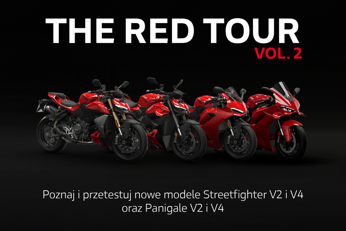 Przed nami druga edycja The Red Tour 2025 – cyklu jazd testowych w salonach Ducati w całej Polsce. To wyjątkowa okazja, aby dowiedzieć się więcej o nowych motocyklach producenta z Bolonii i doświadczyć emocji, jakie towarzyszą ich prowadzeniu.