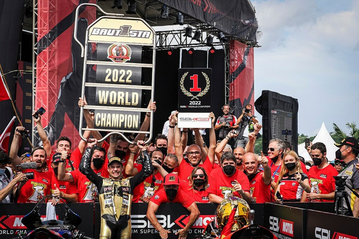 W Indonezji Bautista przekroczył metę na drugim miejscu, ale solidna przewaga pozwoliła na rozpoczęcie świętowania. Alvaro zapisał nową kartę historii wyścigów motocyklowych: po Johnie Kocinskim i Maxie Biaggi, zawodnik z Talavera jest trzecim, który świętuje tytuł Mistrza Świata zarówno w MotoGP (2006, klasa 125 cm3), jak i w padoku WorldSBK.