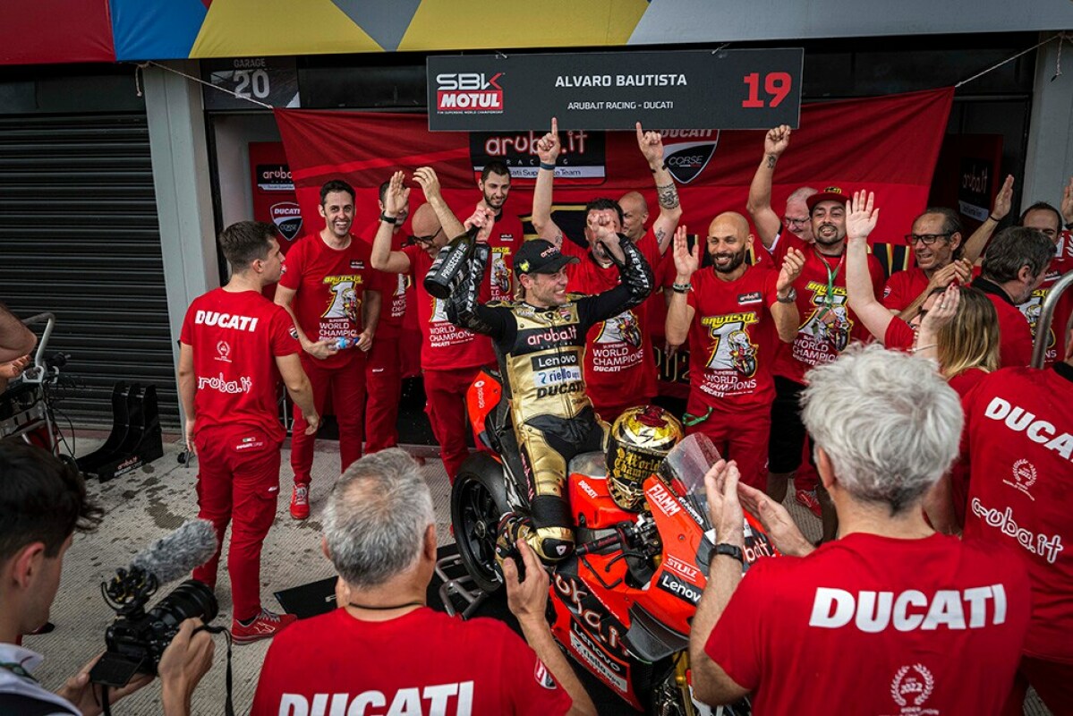 Dzisiaj Ducati jest na szczycie w Superbike, z niesamowitym tytułem zdobytym przez Alvaro Bautistę. Wraz z tytułem MotoGP, ten triumf oznacza kulminację niezapomnianego sezonu, który będzie trwał wiecznie w historii firmy i w sercach wszystkich Ducatisti – powiedział Claudio Domenicali, dyrektor generalny Ducati – Nigdy wcześniej nie udało się zdobyć obu tytułów w tym samym roku, MotoGP i SBK. To odpowiednia nagroda za maksymalny wysiłek, jaki włożyliśmy w oba mistrzostwa, leżące u podstaw sportowego powołania Ducati. Dzięki wysokiej determinacji i dojrzałości Alvaro oraz niezwykłemu potencjałowi technologicznemu Panigale V4R udało się nam osiągnąć cel. Dziękuję Alvaro i wszystkim, którzy przyczynili się do osiągnięcia tego pamiętnego wyniku.